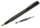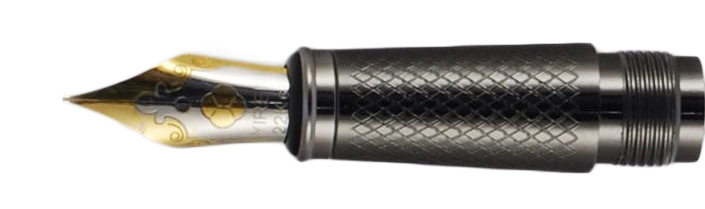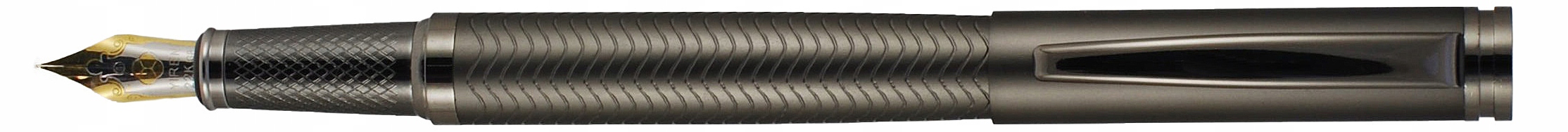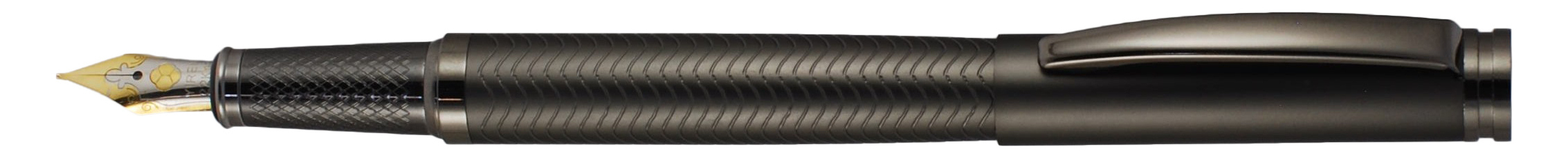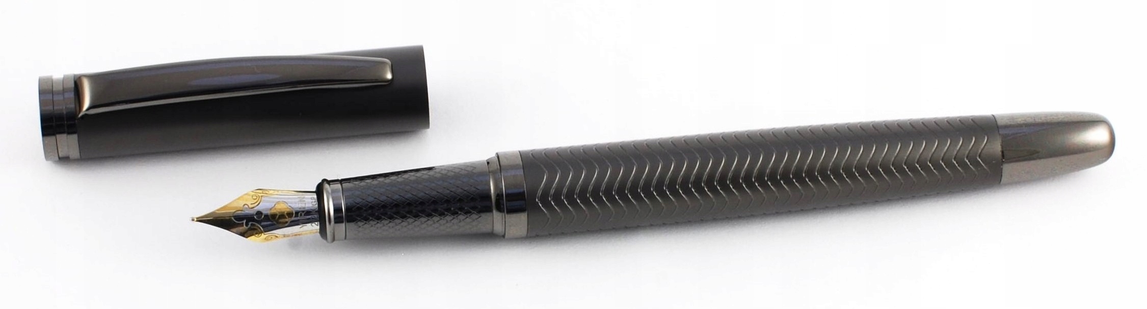 Pióro wieczne o najbardziej lubianej prostej linii. Świetnie wyważone, całe metalowe, dekorowane tłoczeniami na całej długości chwytu i korpusu. Nasadka gładka. Stalówka klasyczna, zdobiona, dwukolorowa stalowa o cienkiej najpopularniejszej grubości.