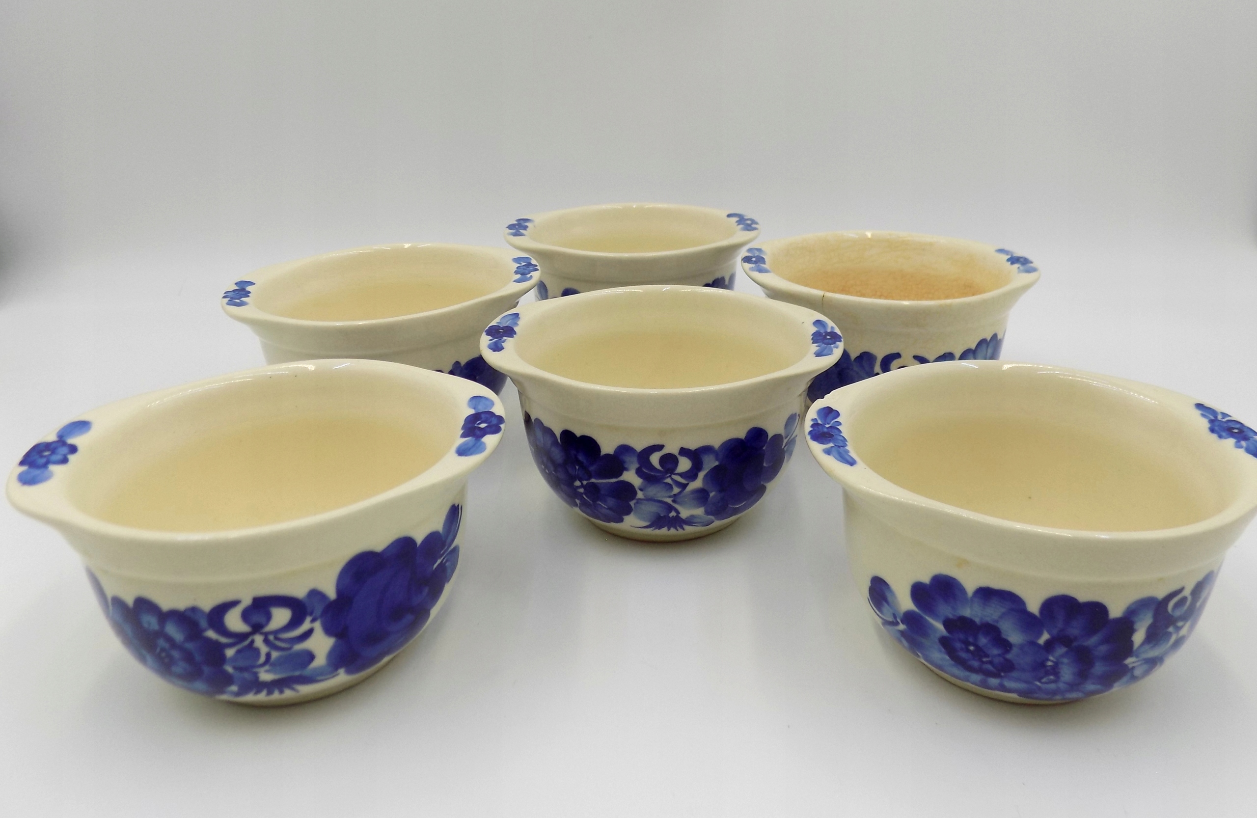 6 fajansowych miseczek z Włocławka z lat 70/80-tych. Sygnowane. Ręcznie malowane. Wymiary; wys. 7 x 13 x 11 cm.