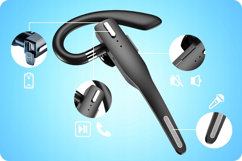 Uchwyt na ucho możesz swobodnie obracać i przekręcać, a pałąk z mikrofonem możesz ustawić pod dowolnym kątem. Założysz ją dzięki temu na dowolne ucho i dopasujesz do własnych preferencji.