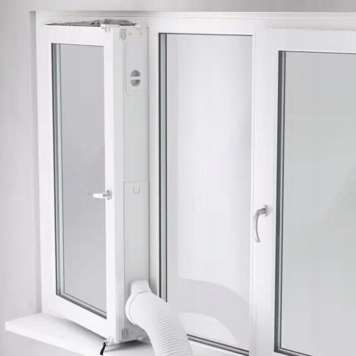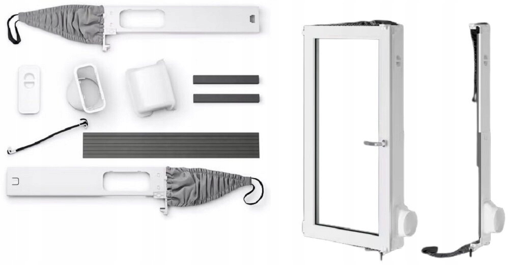 Zestaw okienny EWKIT5 marki Electrolux uszczelniający montowany bez narzędzi w oknach z zawiasami bocznymi. Dzięki zestawowi do okien ustawiona temperatura jest osiągana o 50% szybciej* (w porównaniu do standardowego zestawu do okien/węża). Uszczelniający zestaw do okien z regulowanymi teleskopowymi płytami uszczelniającymi, powierzchniami z tkaniny i chowanymi zaciskami pasuje do okien z zawiasami bocznymi o różnych szerokościach i wysokościach. Pasuje do każdego przenośnego klimatyzatora mającego wąż o średnicy 15 cm.