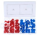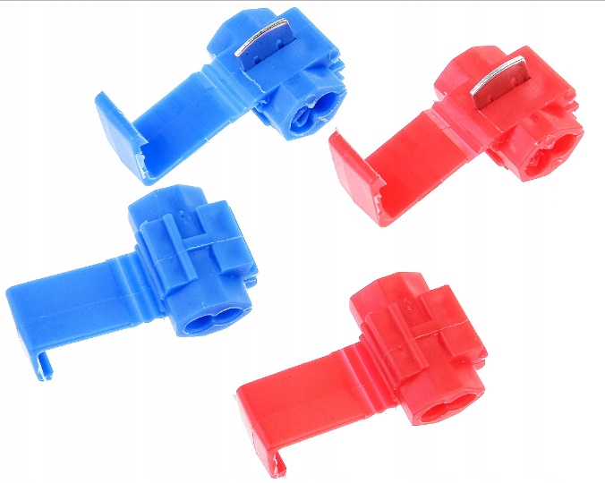 Złączki elektryczne - zestaw szybkozłączek, w dwóch kolorach i rozmiarach, pasujących do najbardziej popularnych średnic przewodów elektrycznych.