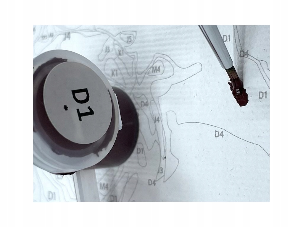 Płótno jest podzielone cienkimi liniami na ponumerowane pola różnej wielkości. Numery pól odpowiadają kolorom farb akrylowych, dlatego umożliwiają dokładne odwzorowanie obrazu.