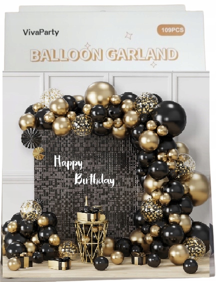Набор воздушных шаров черного и золотого цвета подходит для разных вечеринки, от шикарных банкетов до незабываемых вечеринок в голливудском стиле. Ограничивает Вас только воображение!