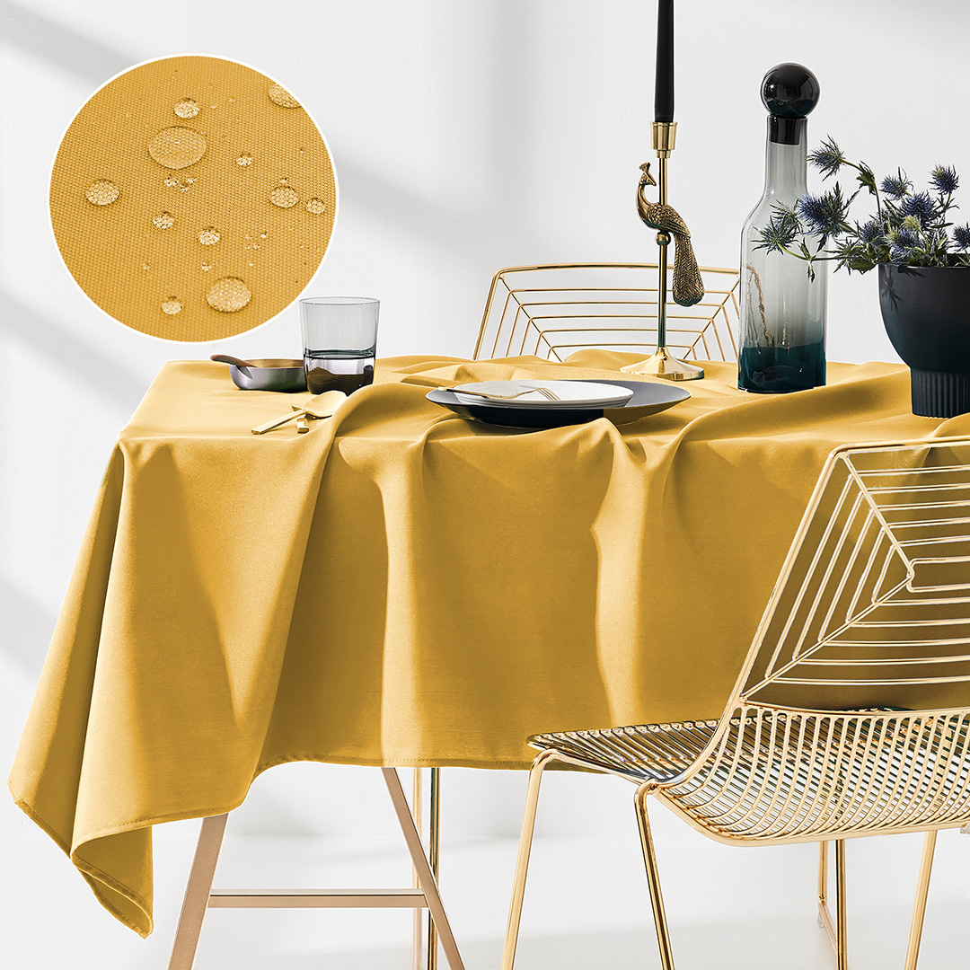 Obrus Aura posiada właściwości plamoodporne - cechuje się podwyższoną odpornością na powstawanie trwałych plam i przebarwień. Dzięki czemu możliwe jest łatwe usuwanie mniej dokuczliwych zabrudzeń.