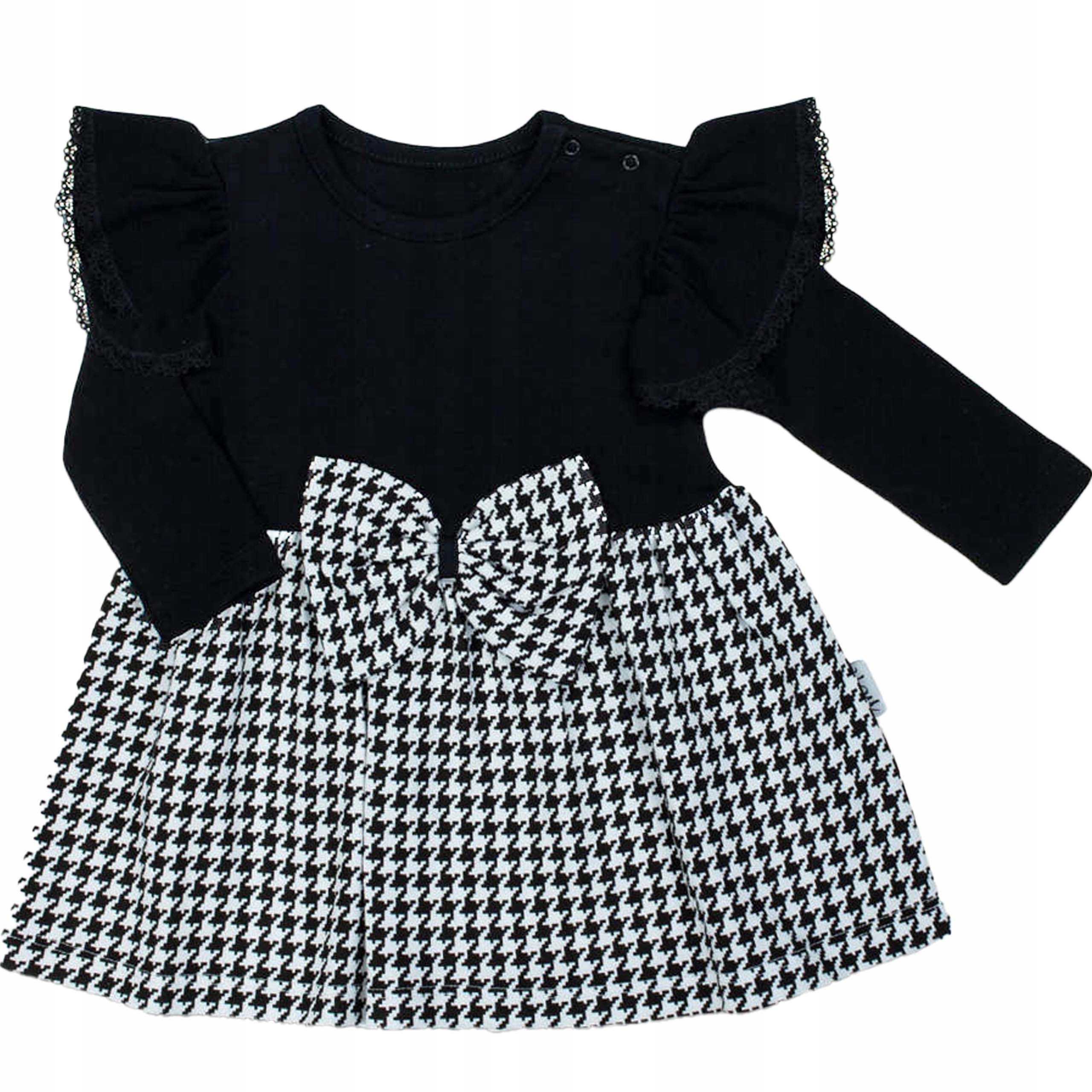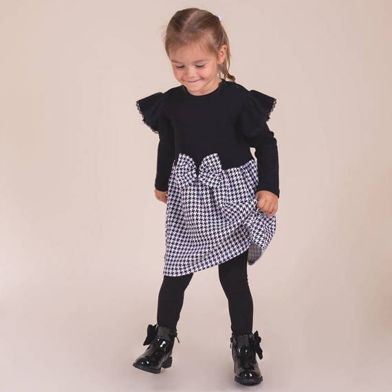 Bawełniana sukienka wizytowa z długim rękawem Pepitka.