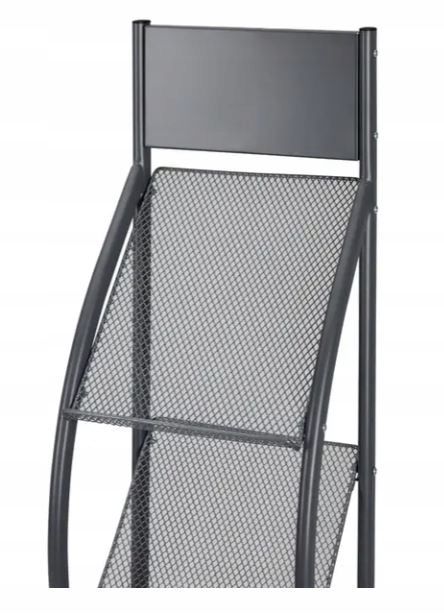 „Torza” posiada 4 półki o głębokości 30 mm z szarej siatki drucianej, nadające wizualnej lekkości, na których przejrzyście zaprezentuje broszury w formacie pionowym A4.