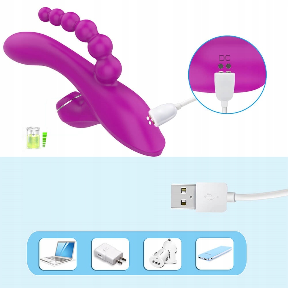 Masażer ma wbudowany akumulator, ładowanym kablem USB, nie potrzebuje baterii. Wykonany z silikonu medycznego, jest bezpieczny, miękki, elastyczny i przyjazny dla skóry. Oczywiście, jest też wodoodporny, dzięki czemu używanie go w wannie nie stanowi żadnego problemu.