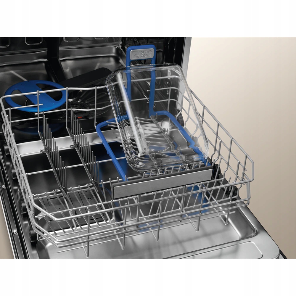 Funkcja SprayZone zapewnia intensywne zmywanie garnków i patelni. Woda pod wysokim ciśnieniem wspaniale oczyszcza wszystkie naczynia umieszczone w specjalnej strefie. Zmywanie jest trzykrotnie bardziej efektywne, niż standardowo.