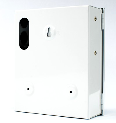 Obudowa zasilacza jest metalowa z wbudowanym zamkiem (w zestawie są dwa kluczyki) . Na tylnej ścianie są otwory mocujące oraz jeden większy otwór kablowy. Na bocznej ściance są trzy otwory kablowe zakryte gumowymi dławnicami.