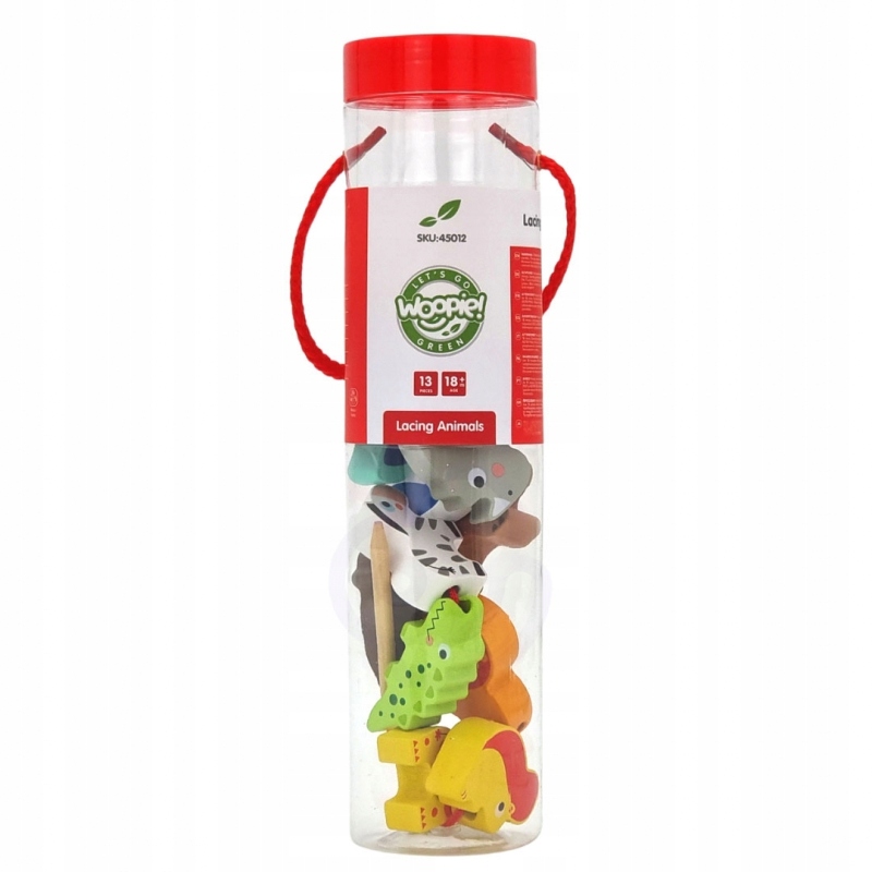 ⏩Klocki Koraliki Do Nawlekania Zwierzęta Safari ZOO od marki WOOPIE z serii GREEN to idealna zabawka do rozwijania umiejętności manualnych i nie tylko u dziecka. Przeplatanka dla dzieci utrzymana została w motywie ZOO Safari.