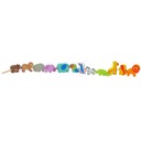 ✅ zestaw składa się ze sznureczka oraz 12 klocków przedstawiających różne elementy safari, m.in.: lwa, żyrafę i małpkę