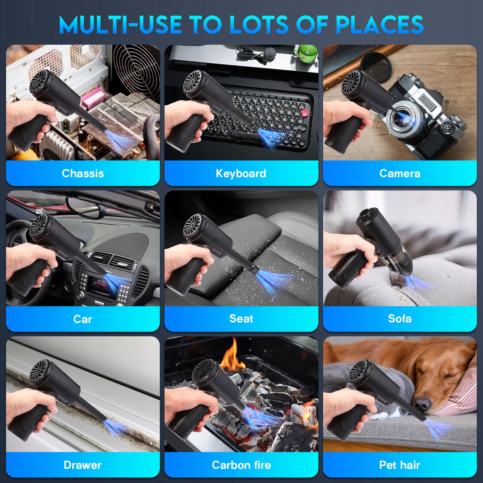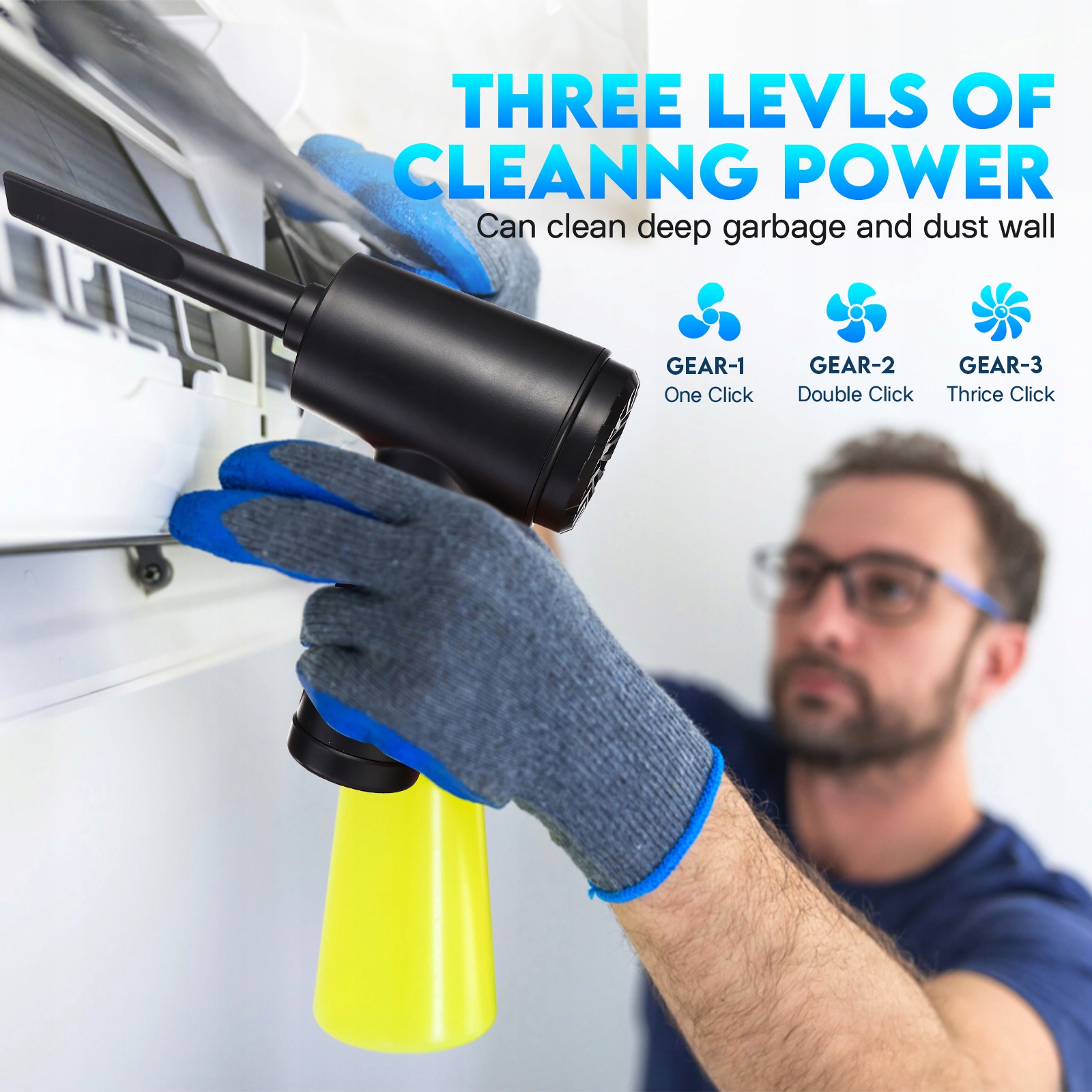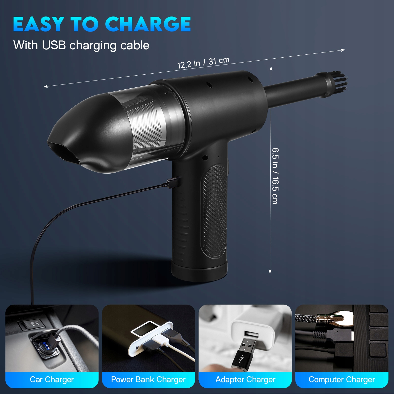 Wielofunkcyjne nasadki oraz widoczny pojemnik na śmieci umożliwiają odkurzanie zarówno suchych śmieci, jak i czegoś mokrego, eg wody. Skuteczne usuwanie kurzu, łatwa obsługa wody, kurzu, żwiru, włosów i innych rodzajów śmieci. Bateria o dużej pojemności, długa żywotność baterii, zapewniająca dobre wrażenia. Konstrukcja uchwytu jest wygodna i wygodna w trzymaniu i obsłudze, oszczędzając energię i wysiłek.