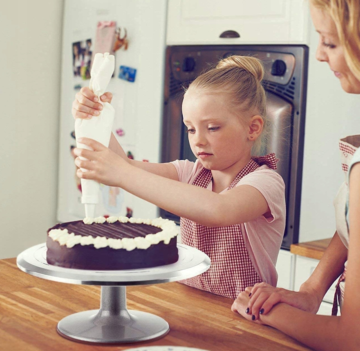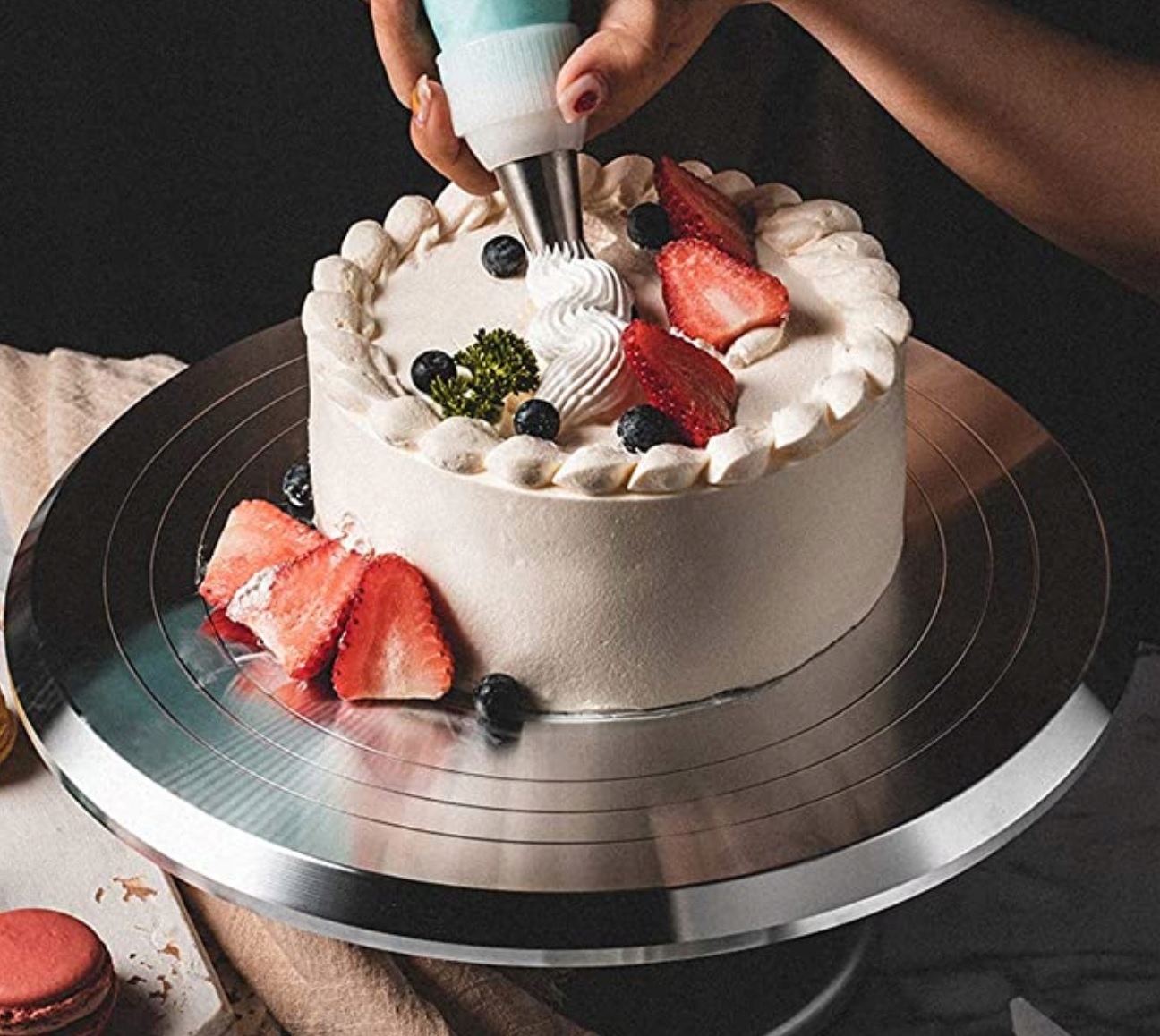 Профессиональная вращающаяся тарелка для украшения тортов и тортов и сервировки сладостей. Благодаря своему высокому весу, держатель является прочным и обеспечивает свободное вращение после его введения вперед.