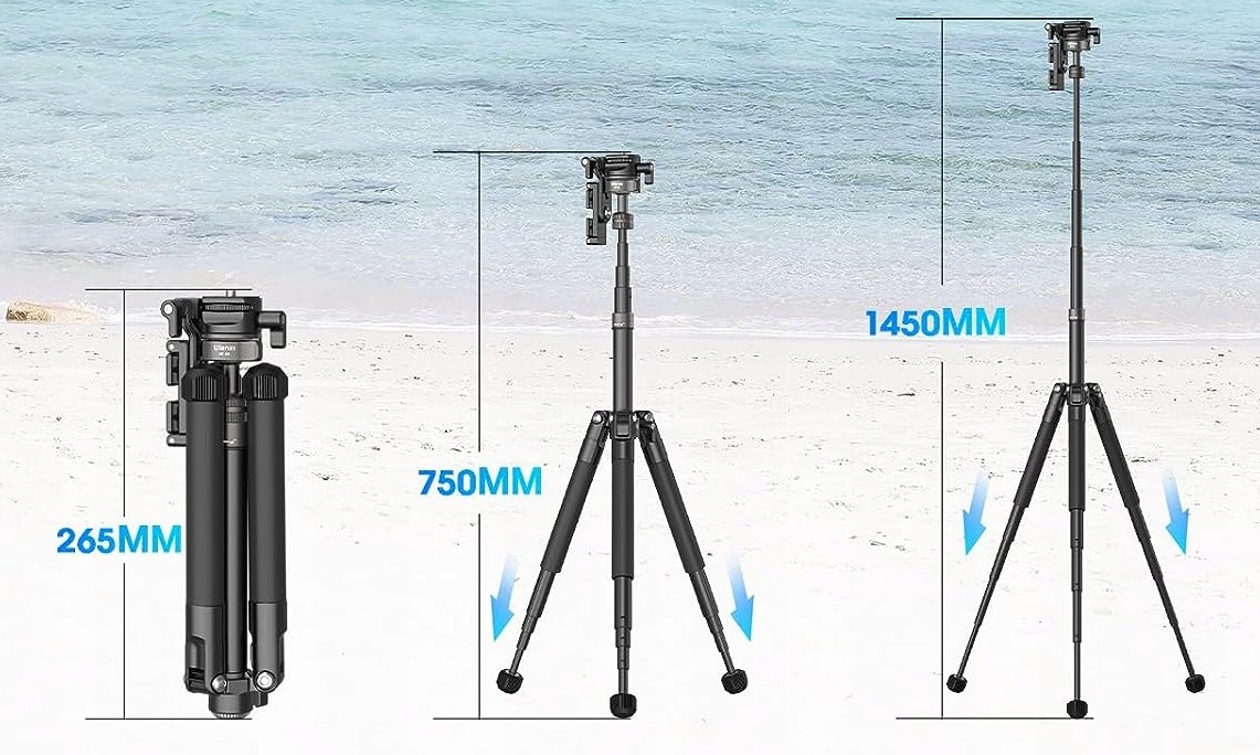 Дополнительным преимуществом является возможность установки штатива, который длина составляет всего 26 см, что облегчает транспортировку и способствует популярности штатива среди путешественники, фотографы природы, репортеры и специалисты в социальных сетях.