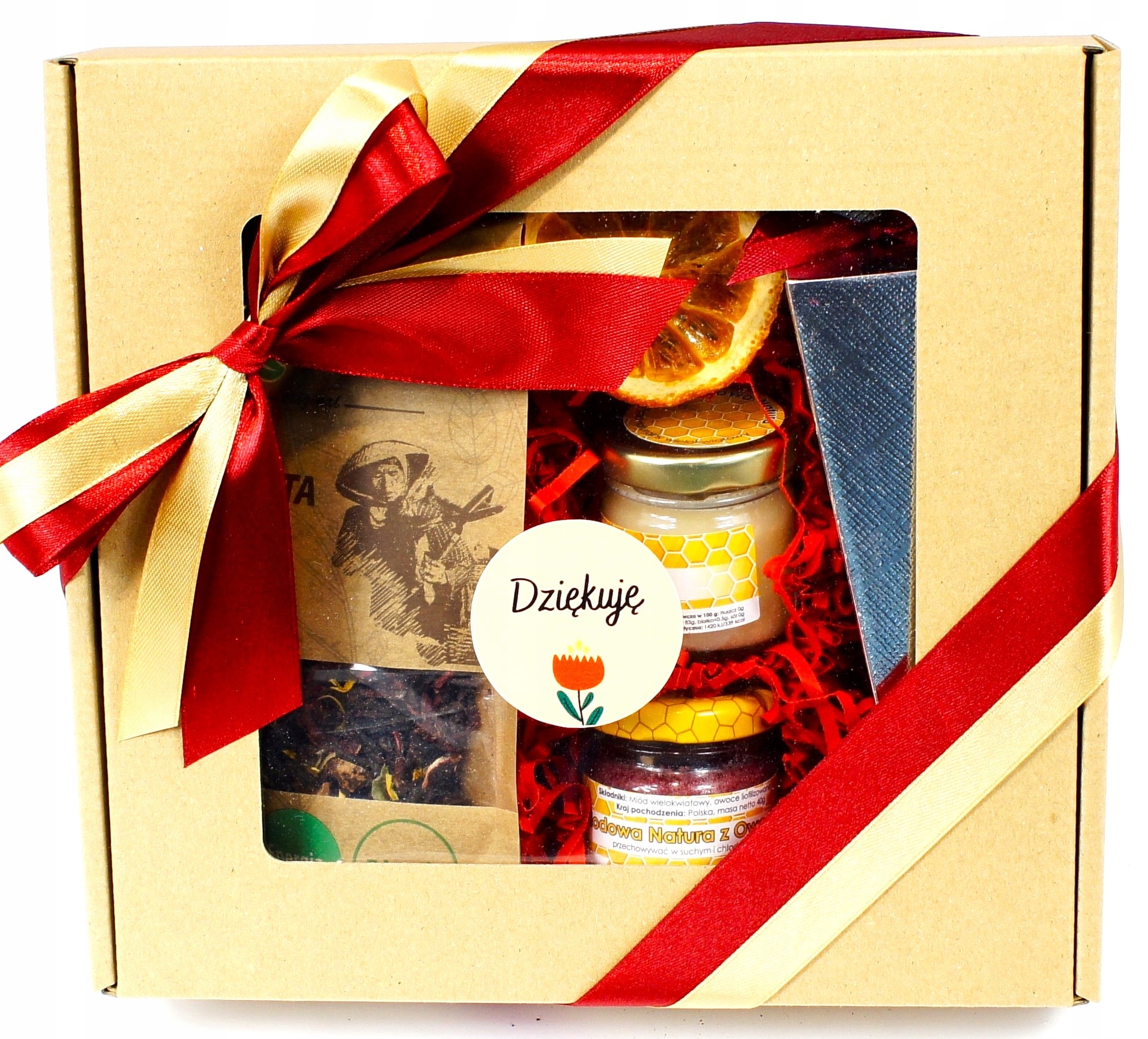 ✅ Zestaw ułożony jest na kolorowym, papierowym "sianku" w kartoniku EKO z dużym "okienkiem" i przewiązany zestawem wstążek lub rafii. Dekoracje mogą być w innym kolorze lub układzie z zachowaniem podobnej kompozycji.