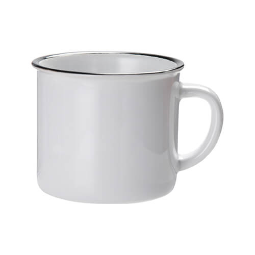 Kubek ceramiczny emaliowany 300 ml do sublimacji - biały z czarnym rantem