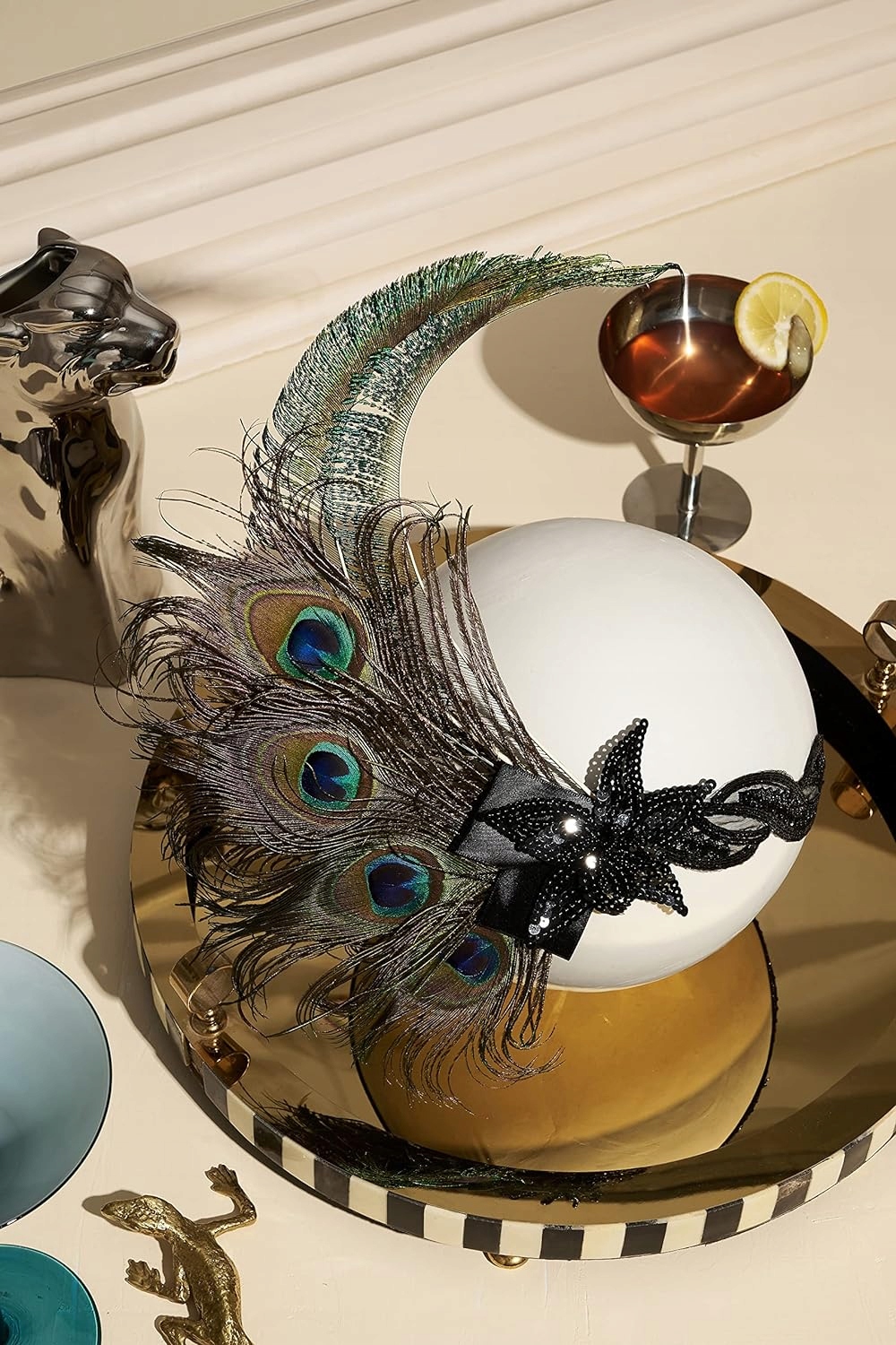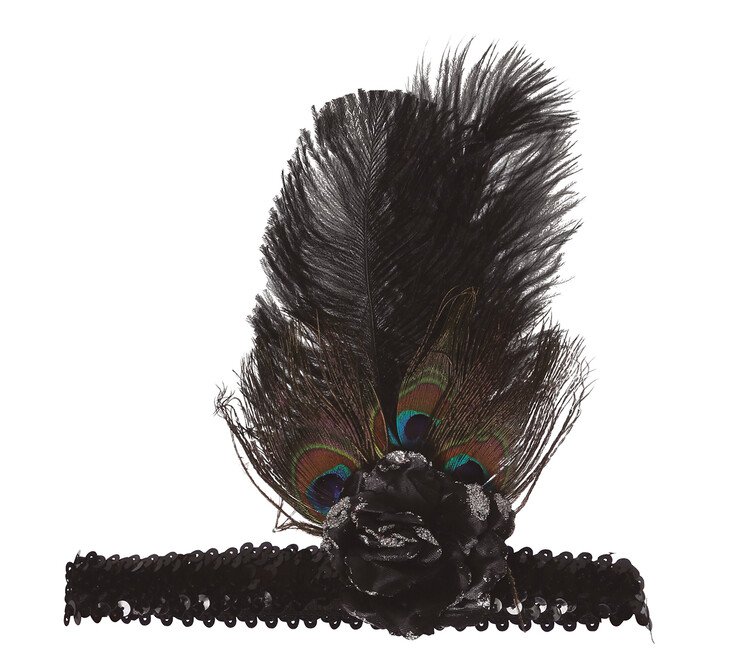 Opaska Retro z piórem i koralikami w kolorze czarnym. Idealna na Sylwester jak i na karnawał.