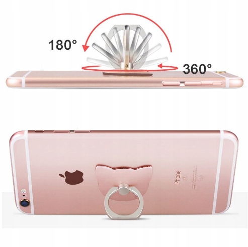 Uchwyt montuje się na obudowie telefonu, następnie palec wsuwa się w pierścień, który utrzymuje bezpiecznie telefon.