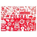 Wzór przedstawiony na pocztówce przedstawia symbole charakterystyczne dla Polski.