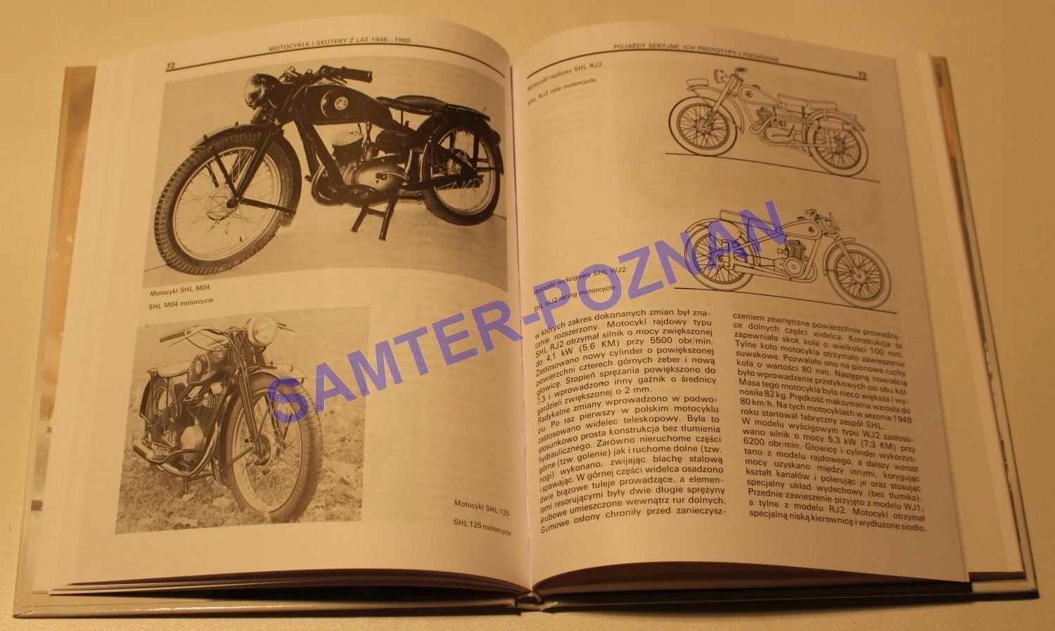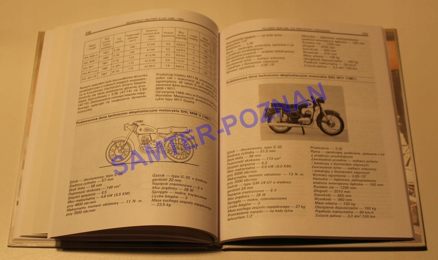 - bogato ilustrowana historia, opisy i dane techniczne motocykli i skuterów seryjnych i ich pochodnych (Sokół, SHL, WFM, WSK, Junak, Osa) oraz sportowych i prototypów (Gad, Fis, WSK, SHL, WFM, Promot) produkowanych w Polsce w latach 1946-1985, plus charakterystyka przemysłu motocyklowego w Polsce i jej chronologia