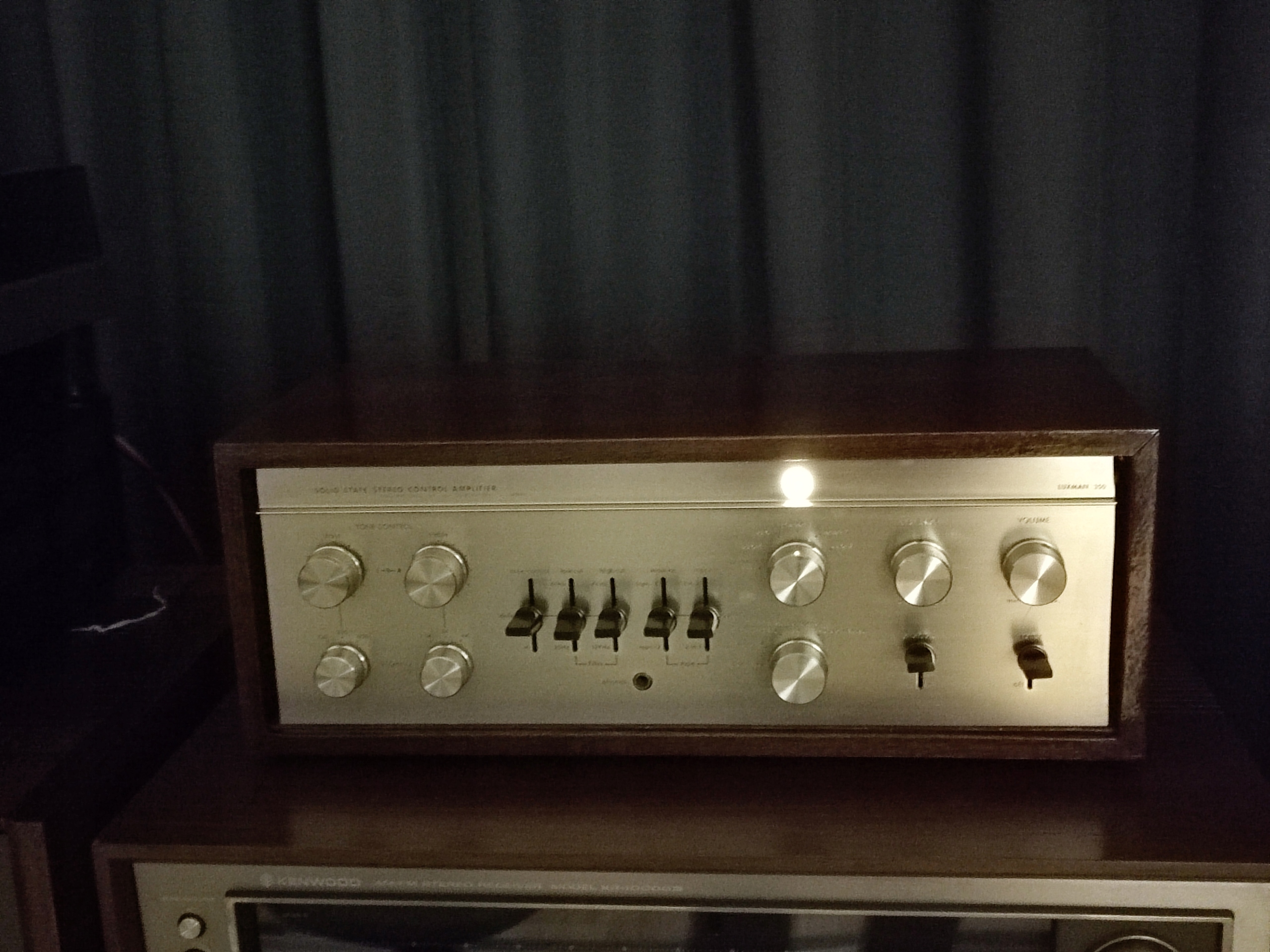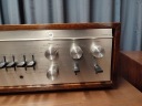 Это также очень практичноинструмент в использовании. Доступен переключатель копирования ленты, который позволяет копировать между двумя цепями монитора полосы, в обоих направлениях, при прослушивании другого входа. Также есть переключатель "бить по тону", который обходит управление тоном. Тональные потенциометры низкие и высокие частоты имеют три частоты на выбор; эти три частоты находятся на расстоянии друг от друга на одну октаву. Он обеспечивает 150, 300 и 600 Гц для управления басами и 1,5, 3 и 6 кГц для управления высоких частот. Ручки управления разделены, поэтому их можно установить отдельно для левый и правый каналы. Он также обеспечивает низкие и высокие частоты среза. В эпоху грохочущих проигрывателей и шумных магнитофонов эти элементы управления были действительно полезны. Быть возможно, самая крутая функция-это контурный переключатель, который находится в верхней части корпуса он закрыт деревянным корпусом. Этот переключатель обеспечивает усиление 0,6 дБ, режим линейное или затухание 0,6 дБ при 250 Гц. Это очень тонкая настройка, предназначенная для адаптация поведения динамиков к акустическим свойствам помещения."