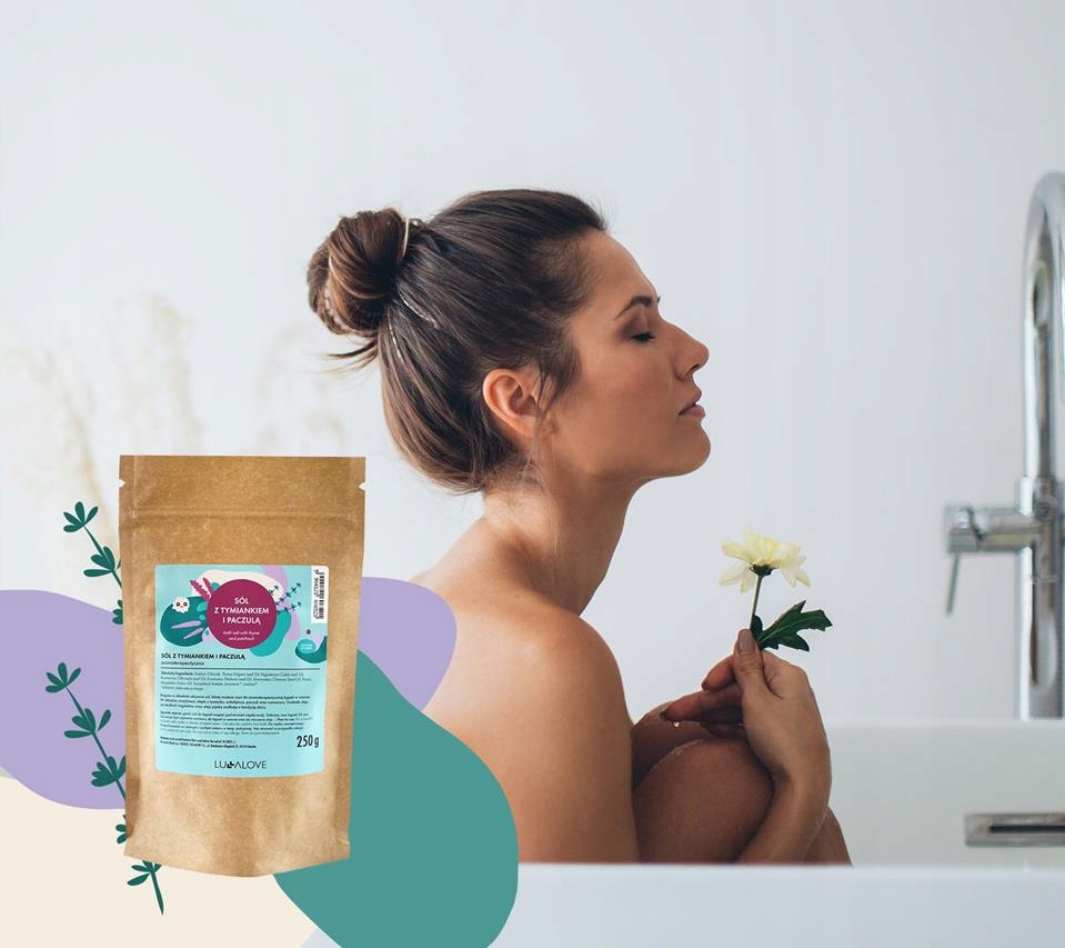 Ciekawostka: czy wiesz czym jest balneoterapia? To jedna z najstarszych gałęzi fizjoterapii, bazująca na leczniczej mocy kąpieli. Kąpiel w soli, z dodatkiem olejku eterycznego, to nie tylko zabieg higieny ciała, a przede wszystkim wsparcie naszego ciała np. przy spadku odporności czy złym samopoczuciu. Olejki eteryczne mają naturę hydrofobową, to znaczy, że nie lubią wody, za to lubią tłuszcze (lipofilność). Nie połączą się zatem z wodą, a będą dążyć do przedostania się się przez warstwy płaszcza hydrolipidowego skóry, aby trafić do układu krwionośnego, gdzie mogą wywoływać pożądane działanie terapeutyczne. Dodatkowo, ciepła woda sprawia, że olejek eteryczny jest w stanie unosić się wraz z parą wodną i trafiać prosto do układu oddechowego, podobnie jak rozpuszczona w wodzie sól. Zatem wanna staje się dużym inhalatorem. Taka kąpiel to zatem nie tylko pielęgnacja skóry, a realna korzyść dla całego organizmu.
