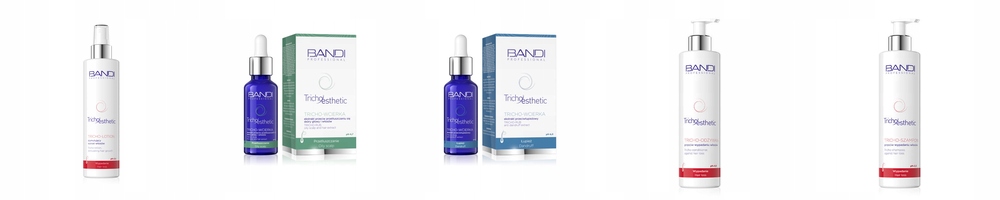 Linia Tricho-esthetic to pierwsze polskie preparaty trychologiczne do specjalistycznej pielęgnacji i profilaktyki najczęstszych problemów skóry głowy i włosów. Twoje rozwiązanie dla efektu zdrowych, mocnych i pięknych włosów! OPRACOWANE W LABORATORIUM BADAWCZYM BANDI przy współpracy z ekspertami z dziedziny trychologii.