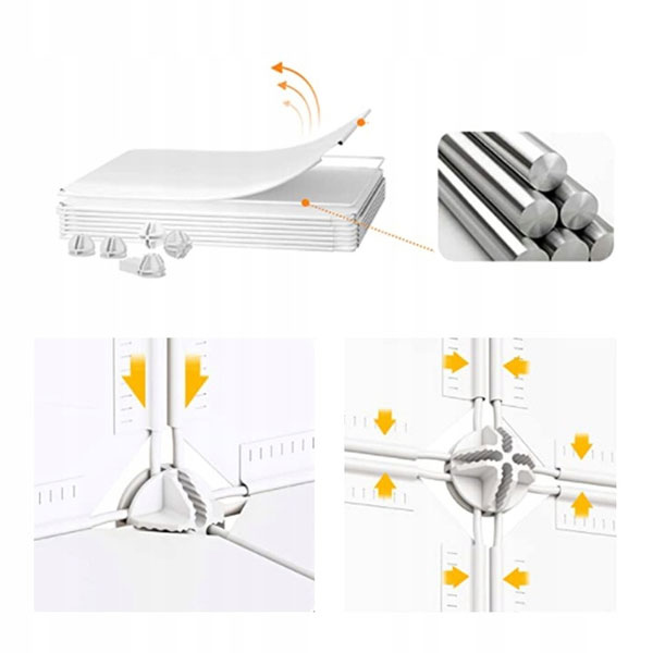 * пластиковые панели PP с металлической рамой и соединители ABS.- максимальная грузоподъемность каждого куба ок.5кг