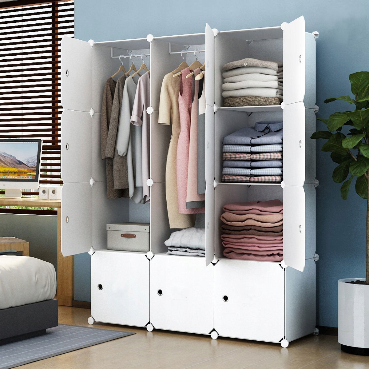 Стеллаж состоит из закрытых и открытых модулей, которые вы можете свободно расположить мебель в соответствии с вашими индивидуальными потребностями и предпочтения.