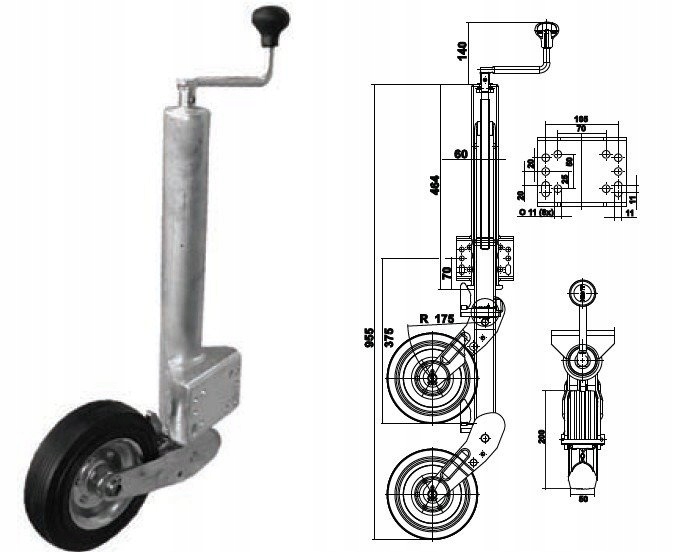 Przedmiotem sprzedaży jest koło podporowe do przyczep renomowanej marki Knott. Koło nie wymaga obejmy. Posiada uchwyt montażowy z otworami, który można przytwierdzić bezpośrednio do przyczepy. Koło wykonane jest z najwyższej jakości materiałów. Posiada regulowaną wysokość. Jego dopuszczalne obciążenie dyszka. wynosi aż 250 kilogramów. Średnica rury wynosi 60 mm, wysokość rozłożonego koła to 955 mm. Koło znajduje idealne zastosowanie przy lawetach czy przyczepach podłodziowych. Dzięki urządzeniu manewrowanie przyczepą, podczepianie oraz zdejmowanie jej z haka jest znacznie uproszczone.