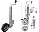 Automatyczne koło podporowe czyli koło podporowe z automatem składania, niemieckiej firmy Knott do przyczep samochodowych. Średnica rury 60 mm. Maksymalny nacisk na koło podporowe 250 kg.
