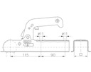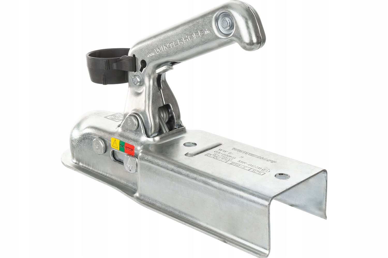 Zaczep kulowy w zestawie z uchwytem na wtyczkę. Model WINTERHOFF WW 8-H na dyszel kwadratowy typu T o profilu 70 mm. Na standardową kulę haka o średnicy 50 mm. Ze wskaźnikiem poprawności sprzęgu i wygodną rączką. DMC do 800 kg, dopuszczalny nacisk 75 kg.