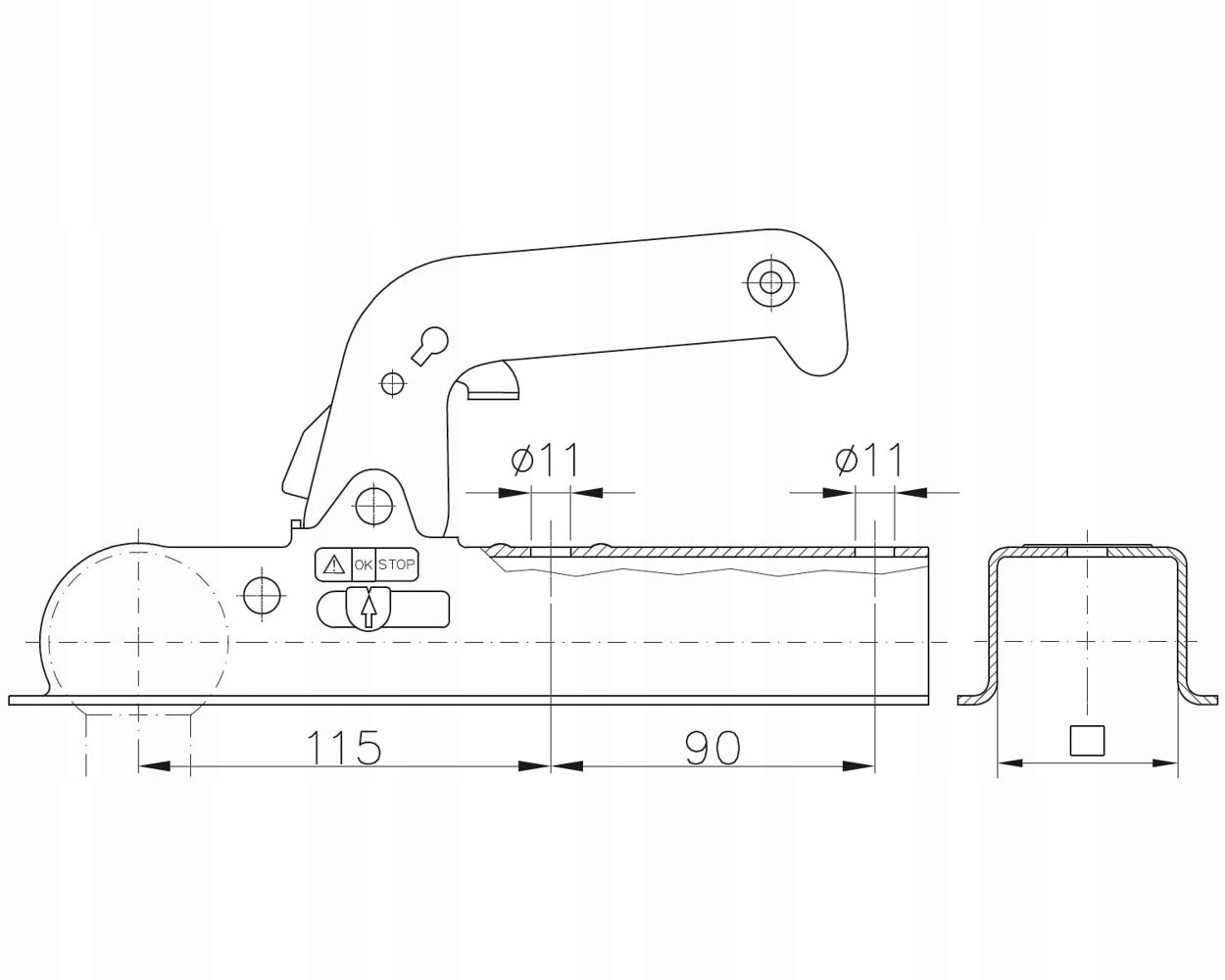 Przedmiotem sprzedaży zaczep kulowy na dyszel kwadratowy o profilu 70 mm WW 8-H, dla przyczep z dopuszczalną masą całkowitą do 800 kg.