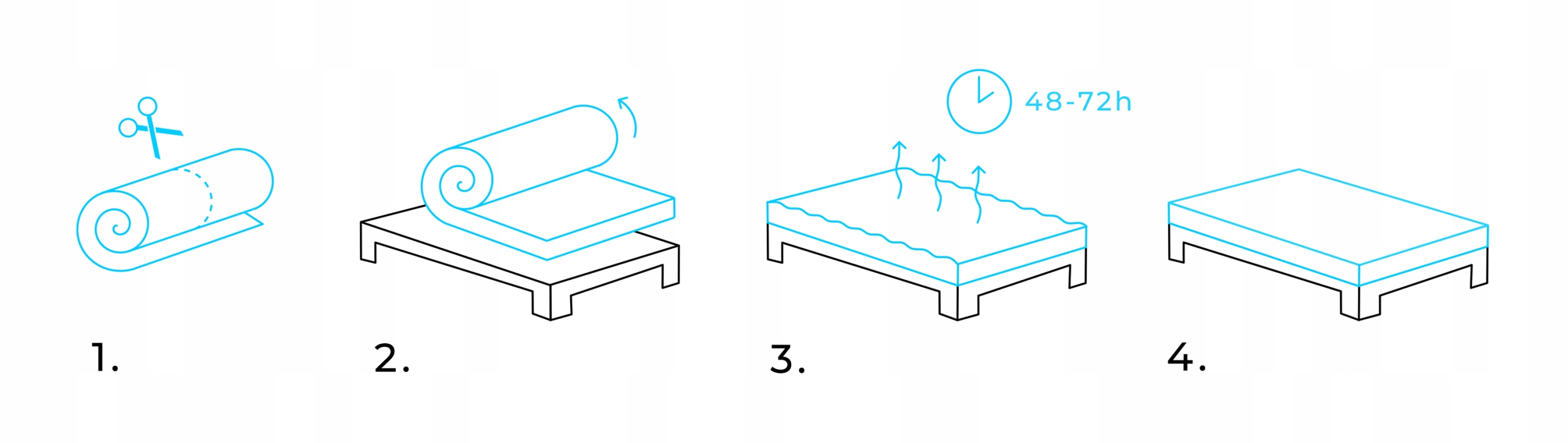 Wszystkie materace pakowane są w atestowanej technologii V.P.R., która polega ona na próżniowym sprasowaniu materaca, a następnie jego zwinięciu w rulon na specjalnej rolownicy.