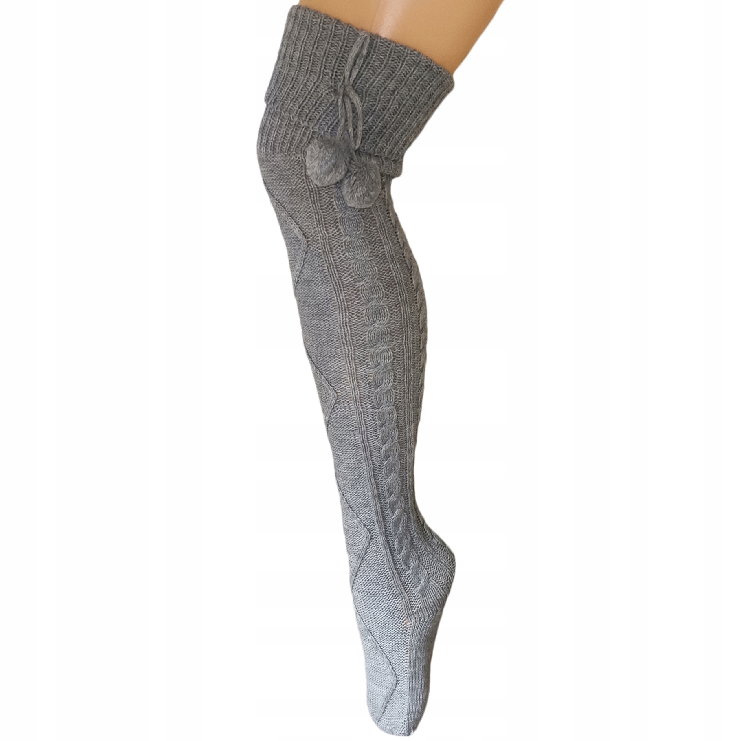 Zakolanówki damskie wykonane z bardzo przyjemnej przędzy. Zakolanówki mają wzór swterkowy, dodatkowo zdobione są uroczymi pomponikami. Bardzo długie skarpety skutecznie ogrzeją Twoje nogi w chłodne dni. Są wytrzymałe, posłużą przez długi czas! Kolory nie płowieją. Dzianina jest elastyczna, skarpety się dopasowują. Noś je do kozaków, workerów z połączeniem sukienki czy spódniczki. Ciepłe długie skarpety zakolanówki świetnie sprawdzą podczas chłodnych wieczorów i poranków.