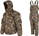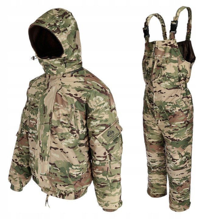Zestaw uszyty jest z materiału typu MEMBRANA i ocieplony jest watą poliestrową. Materiał membranowy posiada właściwość, że wilgoć przenika tylko w jedną stronę (na zewnątrz) i zawsze czujesz się sucho i ciepło. Chroni przed mrozem do -25 st.