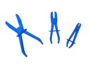 Zestaw szczypiec zaciskowych do przewodów elastycznych . Do przewodów o średnicy do 63.5 mm. Za pomocą szczypiec można zapobiec wypłynięciu płynów z przewodów chłodniczych, hamulcowych, itp. Cechy produktu małe szczypce (1/8" - 5/16"), średnie szczypce (1/2" - 3/4"), duże szczypce (3/4" - 2 1/2") wykonane z wysokiej jakości tworzywa sztucznego blokada za pomocą pierścienia zaciskowego