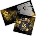 Zaproszenie cechuje nowoczesny design w luksusowych barwach czerni i złota z motywem balonów, konfetti i złotego światła, które symbolizują szampańską zabawę.