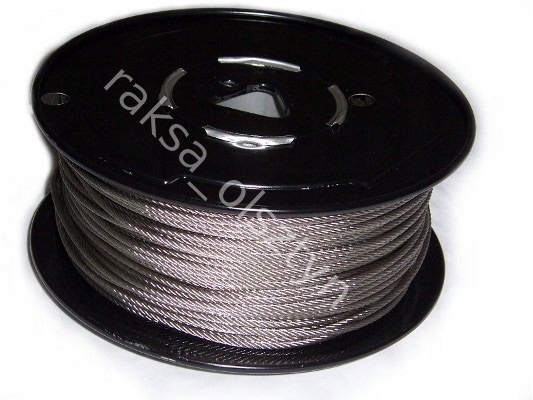 Lina stalowa nierdzewna 7 x 19 (miękka) o średnicy 4mm. Zalecana do fałów oraz innych zastosowań, gdzie linka pracuje na rolkach.
