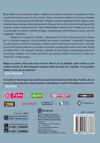 Wciąż widać je na wszystkich mapach. Możemy je znaleźć w atlasach i na globusach. W rzeczywistości jednak już go nie ma, umarło. Przez czterdzieści ostatnich lat Jezioro Aralskie, zwane przez miejscową ludność Morzem, niegdyś czwarte największe jezioro świata, zostało zamienione w jałową, bezkresną pustynię. Bezpowrotnie zniszczono dziesiątki gatunków zwierząt, tysiące hektarów lasów i życie kilkudziesięciu tysięcy ludzi. A stało się to w imię rozumianego na sowiecki sposób postępu, napędzanego materialistyczną wizją "wszechmogącego" człowieka. Książka ta to opowieść o jednej z największych zbrodni dokonanych przez człowieka -- o ludzkiej arogancji, niszczycielskiej sile naszych pomysłów. To opowieść fascynująca, ale przede wszystkim przerażająca. Bartek Sabela wędruje po Uzbekistanie i odkrywa przed nami owianą tajemnicą, dramatyczną historię zanikającego jeziora oraz ludzi, którzy od wieków byli z nim związani. Zabiera czytelnika w poruszającą, wstrząsającą podróż na wyschnięte, spękane dno i każe zastanowić się nad tym, dokąd zmierzamy w swojej "nieomylności" i braku pokory.