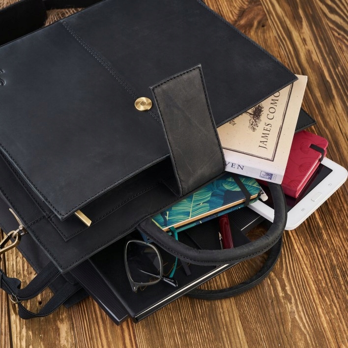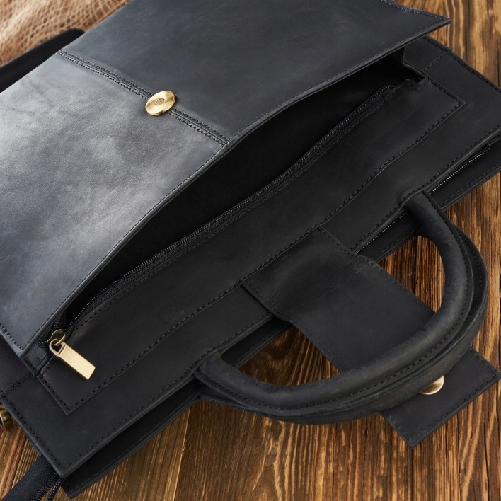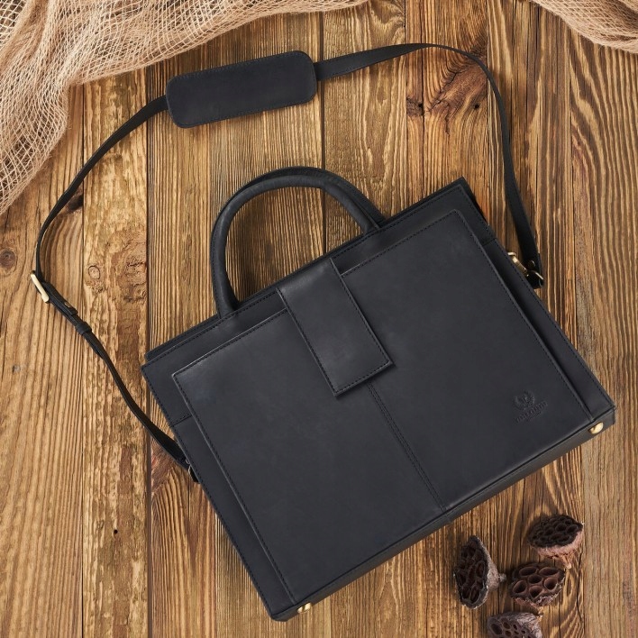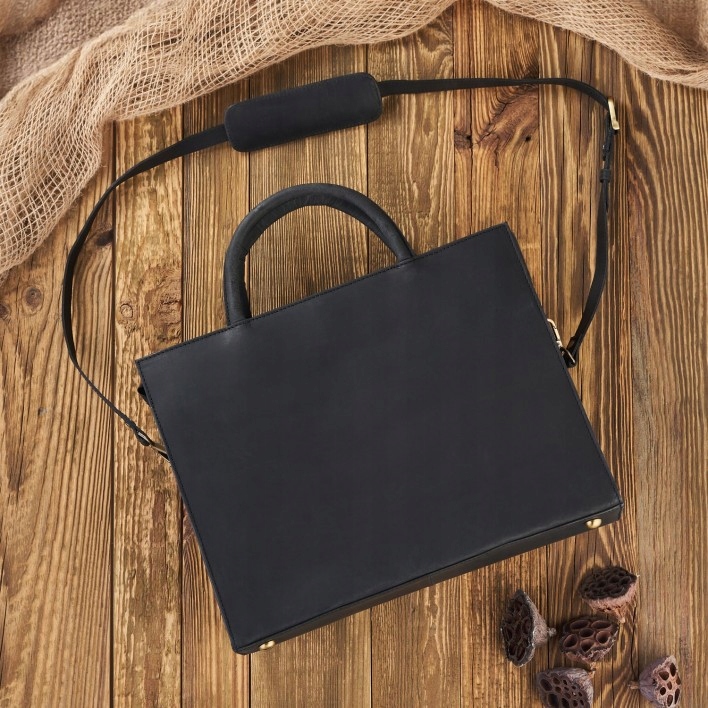 ✔ Teczka po całości została usztywniona, aby przenoszone dokumenty nie uległy zgnieceniu lub uszkodzeniu. Od góry posiada solidne, skórzane uchwyty do noszenia aktówki w ręce. Ponadto, torba została wyposażona w regulowany, skórzany pas na ramię z wygodnym naramiennikiem, który zmniejsza ucisk wypełnionej torby.