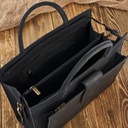 ✔ Torba posiada na froncie pojemną kieszeń zapinaną na suwak oraz od góry modną i dużą patkę z zatrzaskiem, która dodatkowo chroni dokumenty przed dostępem niepowołanych osób np. w tramwaju lub autobusie. Wnętrze kieszeni zostało wyłożone solidną podszewką.