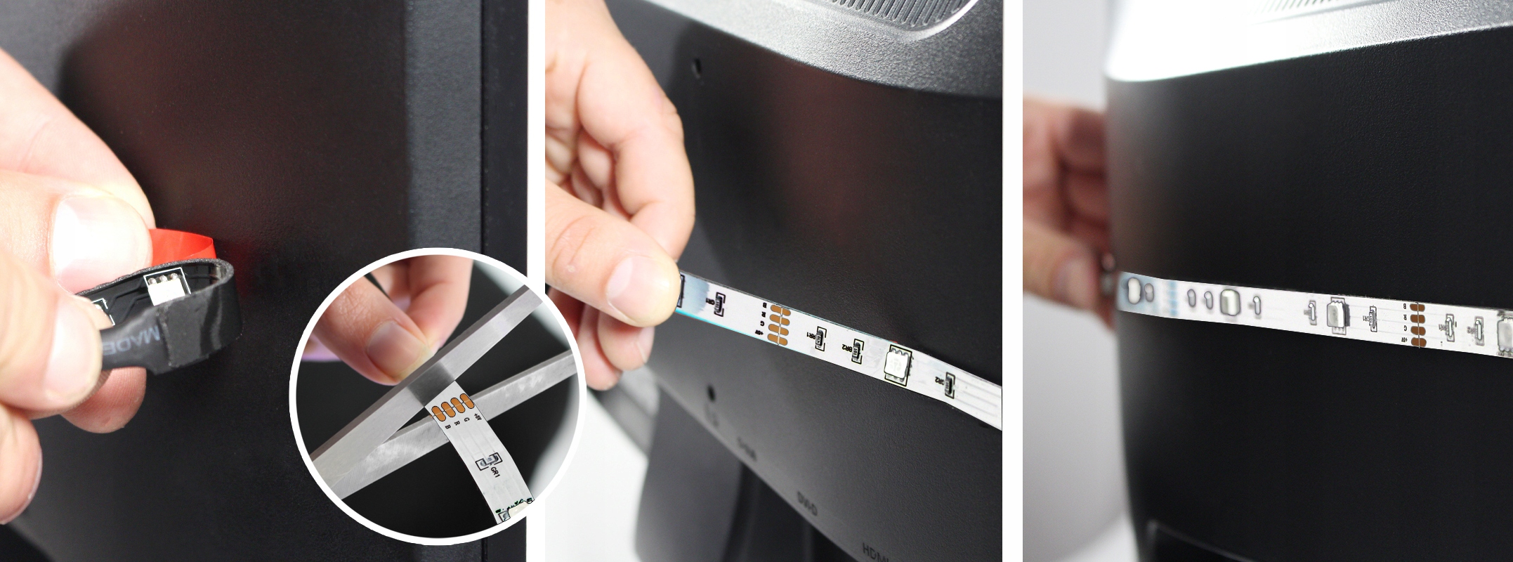 Taśmę możesz przykleić do powierzchni przy pomocy zwykłych samoprzylepnych organizerów do kabli (brak w zestawie).