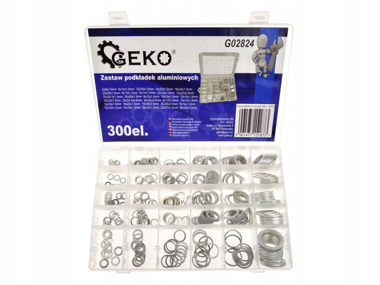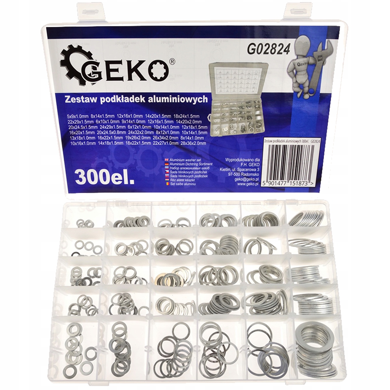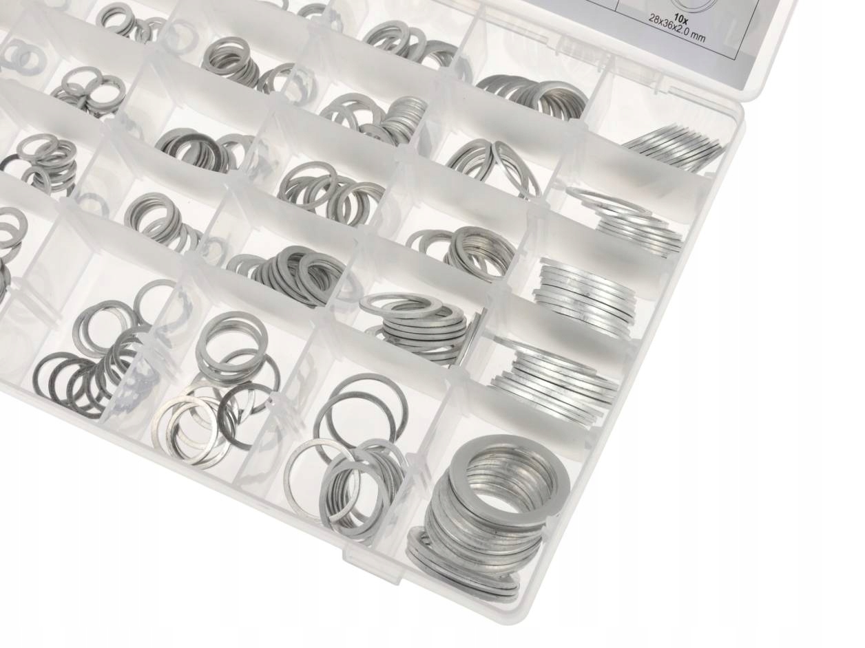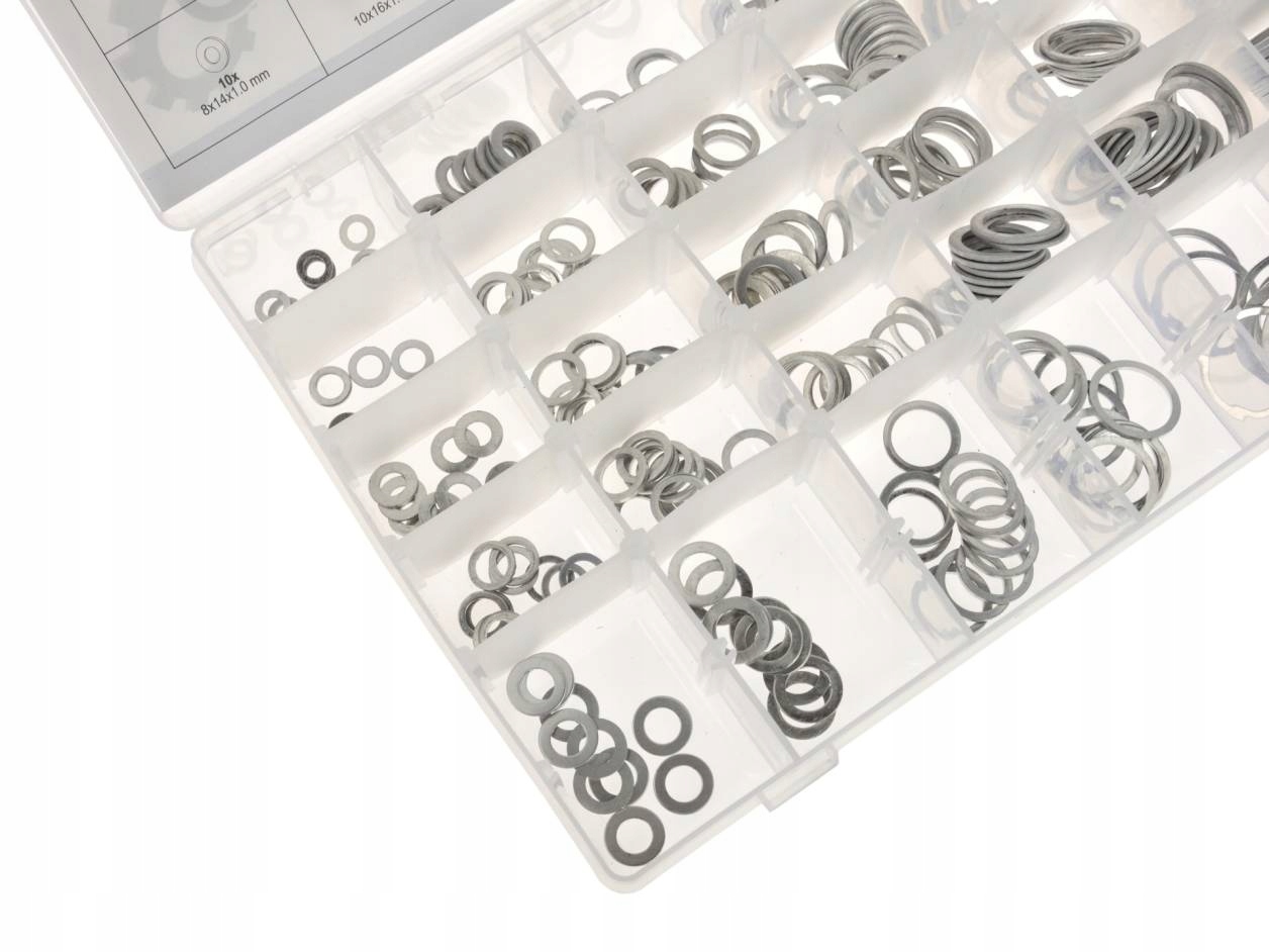 Zestaw 300 podkładek aluminiowych w 30 różnych rozmiarach.