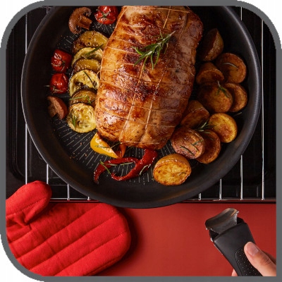 Przenoś naczynia i patelnie bez obaw dzięki innowacyjnej rączce z 3-punktowym systemem bezpieczeństwa, możliwością obciążenia do 10 kg oraz 10-letnią gwarancją. Na Ingenio Unlimited możesz liczyć na długo!