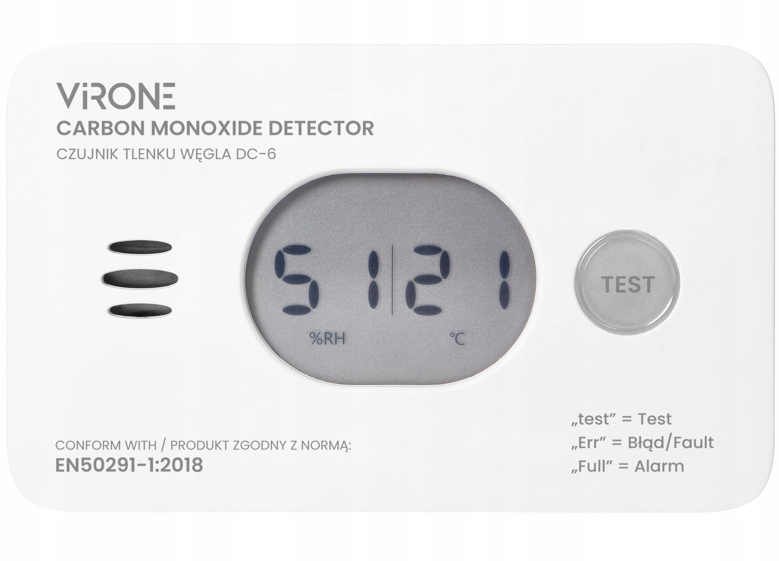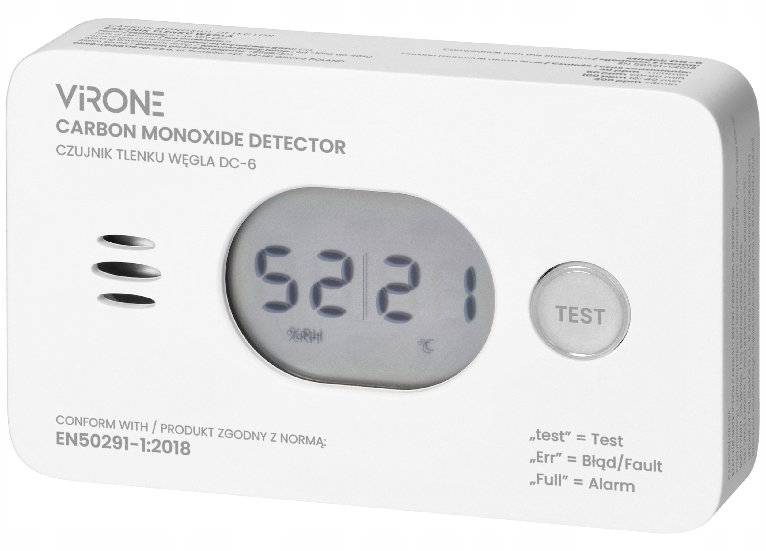 Датчик чада VIRONE DC - 6 соответствует строгому стандарту EN 50291-1:2018 для бытовые детекторы угарного газа.