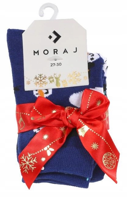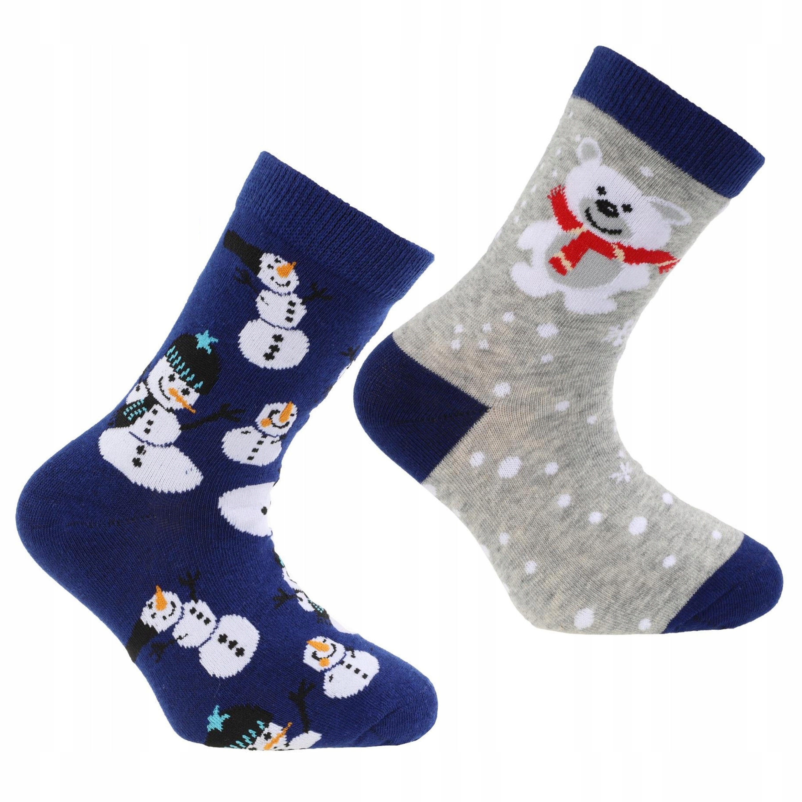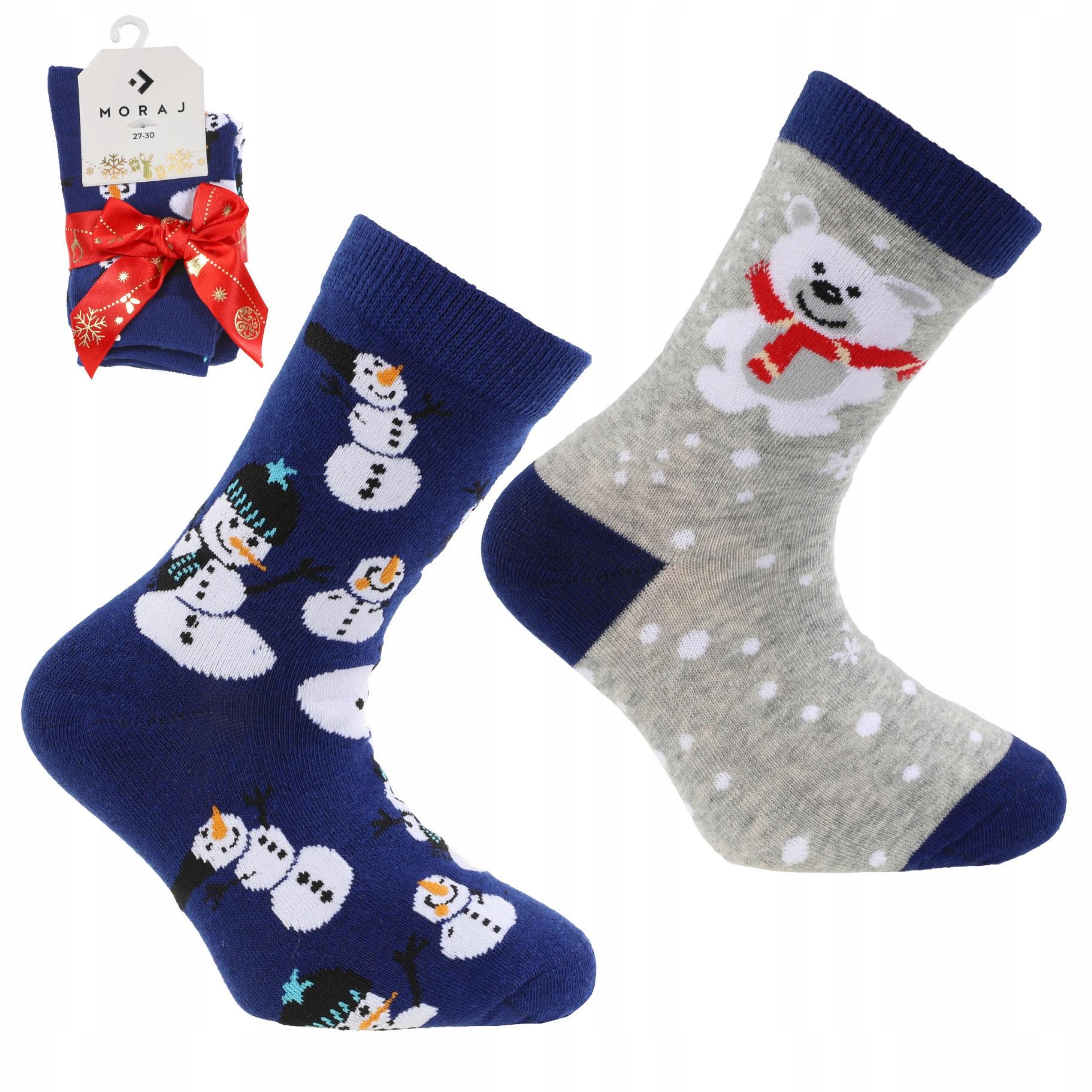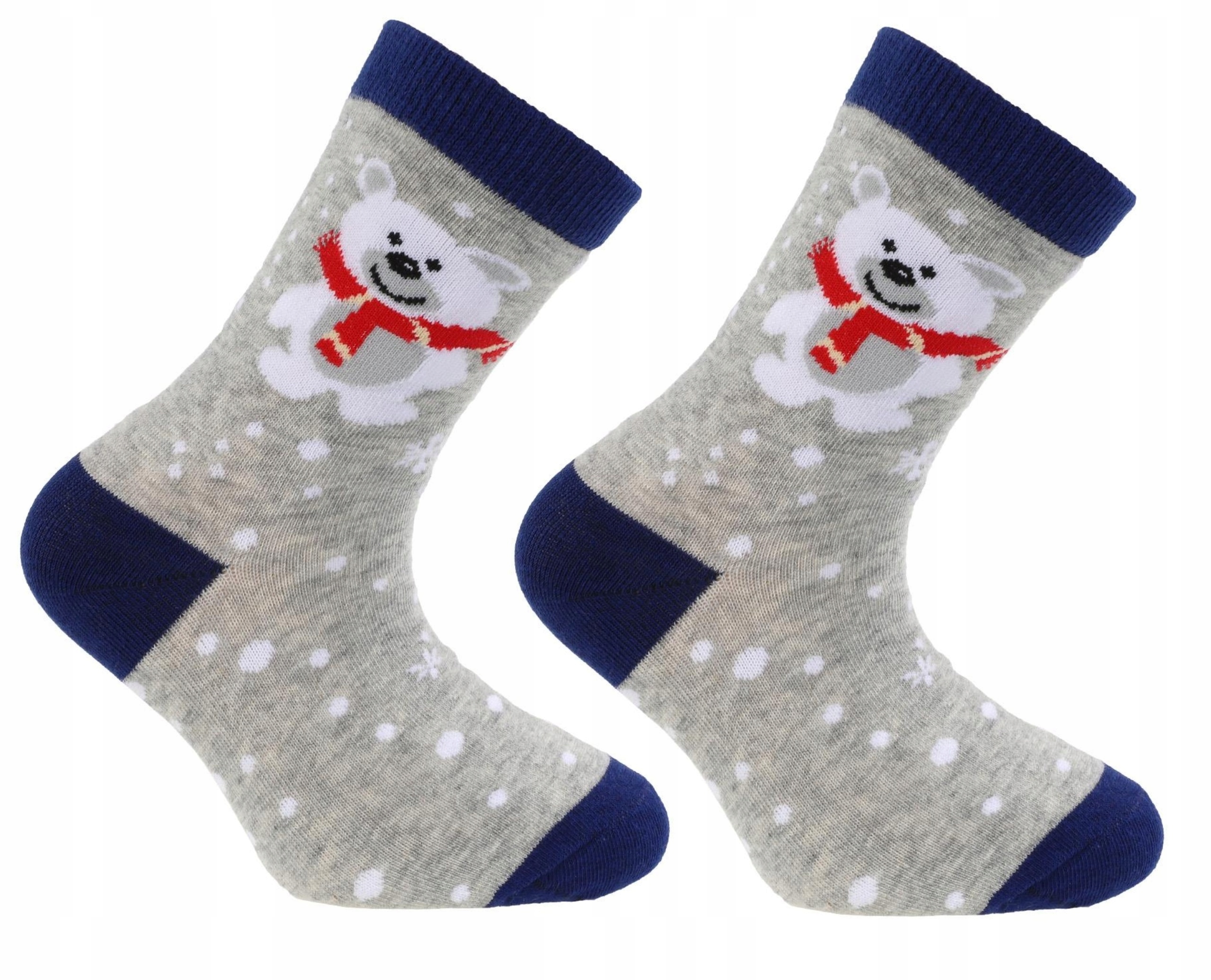 ŚWIĄTECZNE, ciepłe, wzorzyste skarpety dziecięce pakowane z ozdobną kokardą.