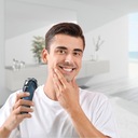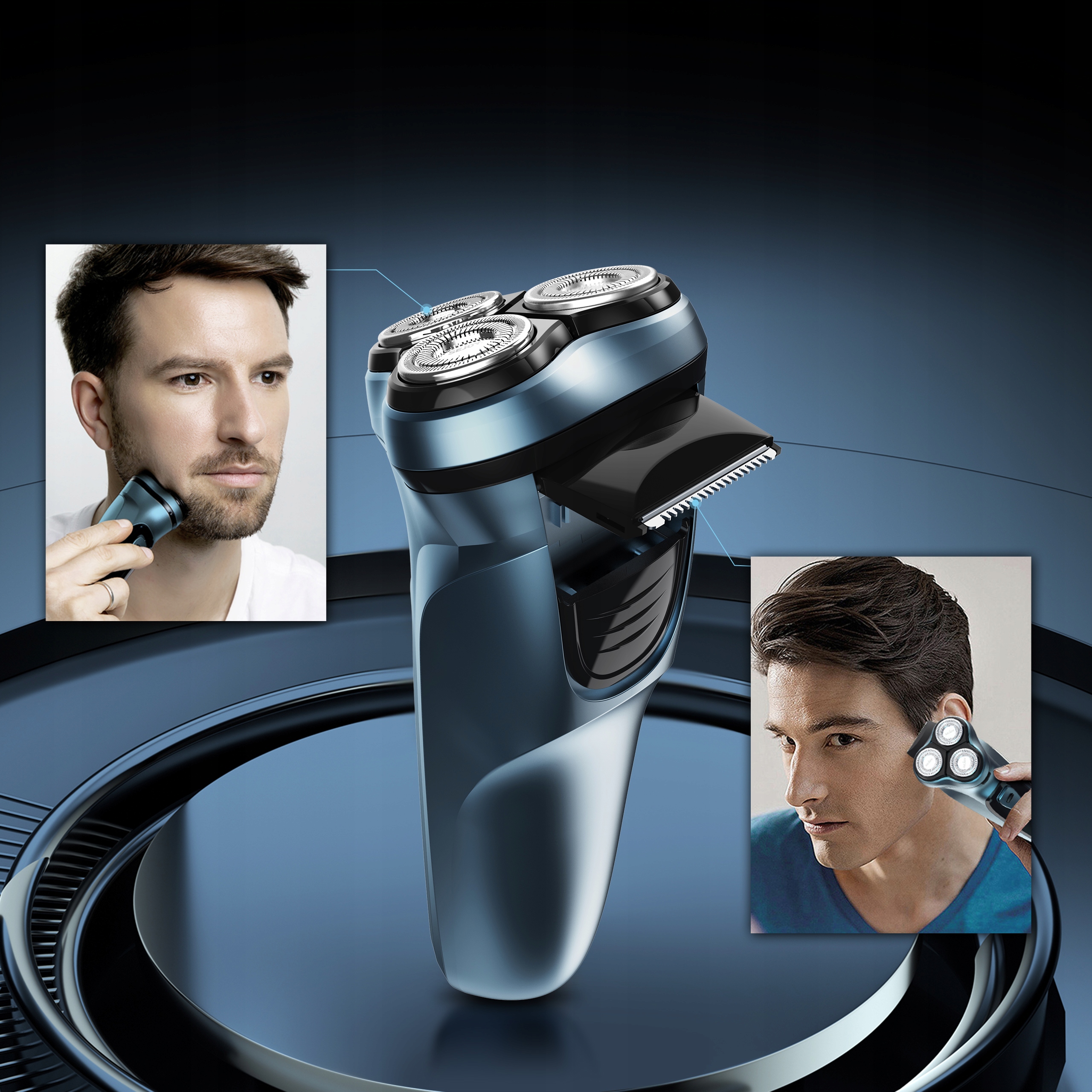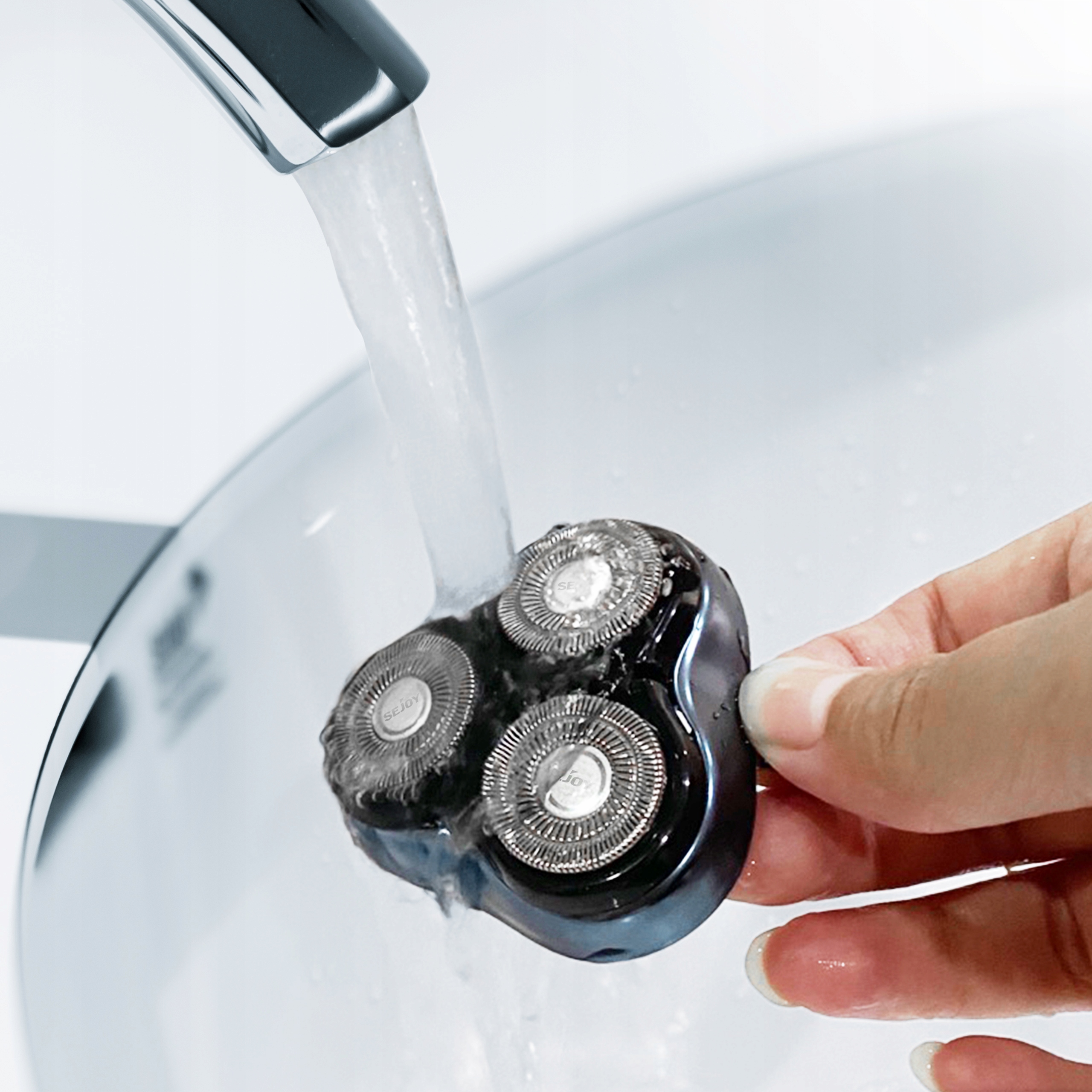 ⭐ Ta elektryczna golarka dla mężczyzn jest wyposażona w trzy ruchome głowice golące 3D, które doskonale dopasowują się do konturów twarzy, szyi i żuchwy. Zmniejsza tarcie o skórę, zapewniając gładkie i delikatne golenie.