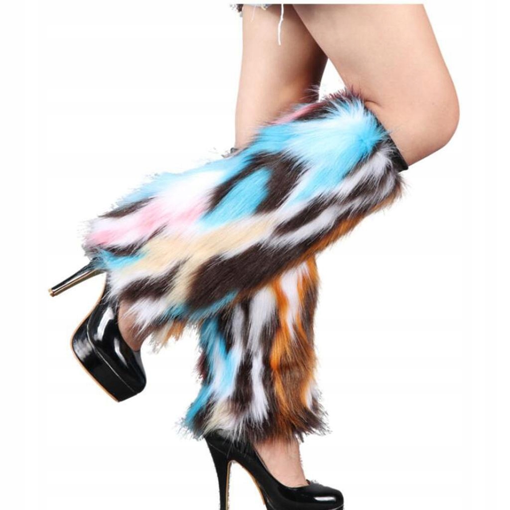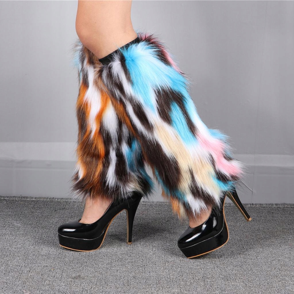 Women Fuzzy Faux Fur Boots Shoes Cuff Cover Sleeves Leg Warmers 30cm Multi