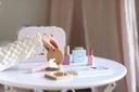 Dzięki naszej uroczej walizce Make up możesz być ładna w każdej chwili. Produkty znajdujące się w walizce Make up wykonane są z drewna, dzięki czemu nie można się rozmazać. Wszystkie produkty są ładne zapakowane w różową walizkę, dzięki czemu możesz po prostu zabrać ze sobą swój makijaż, gdy idziesz odwiedzić znajomych.